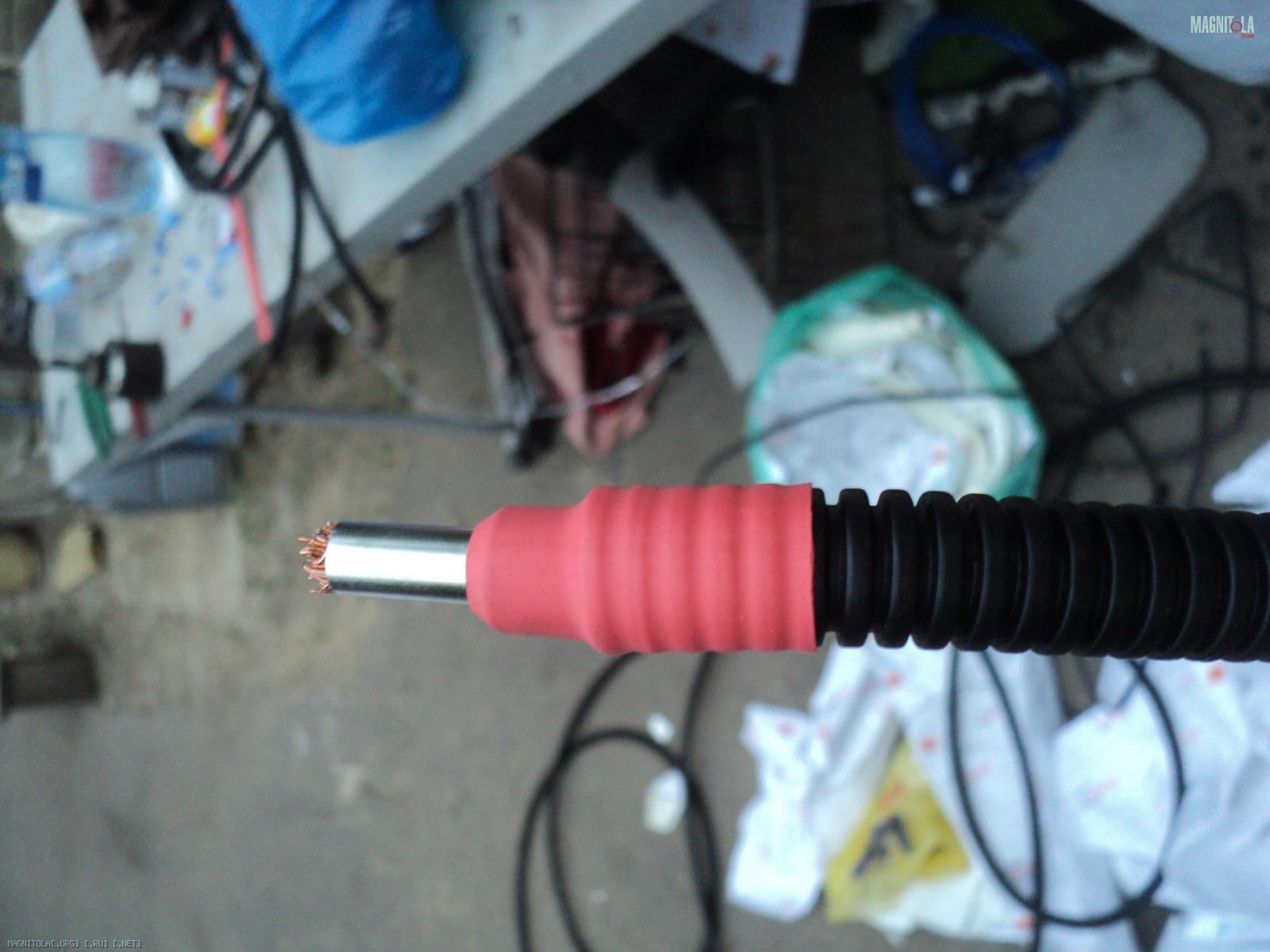 Так как пресс-клещей не было, медные наконечники организовал вот таким вот способом