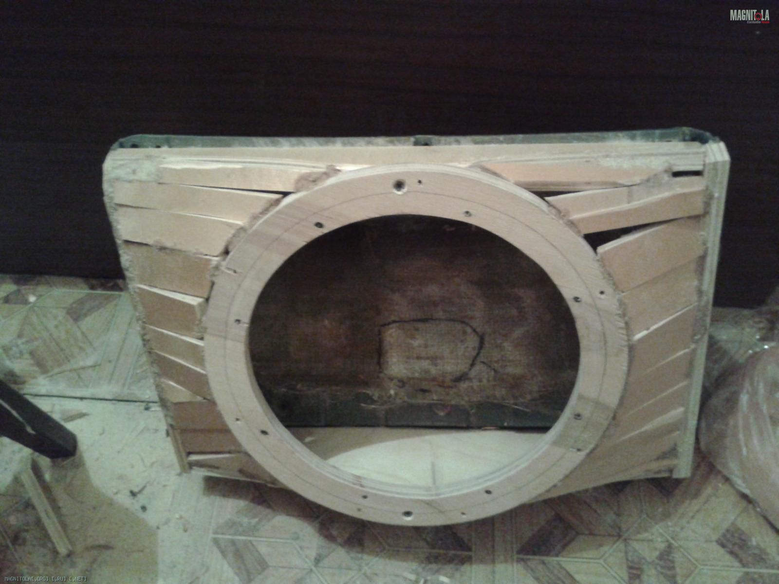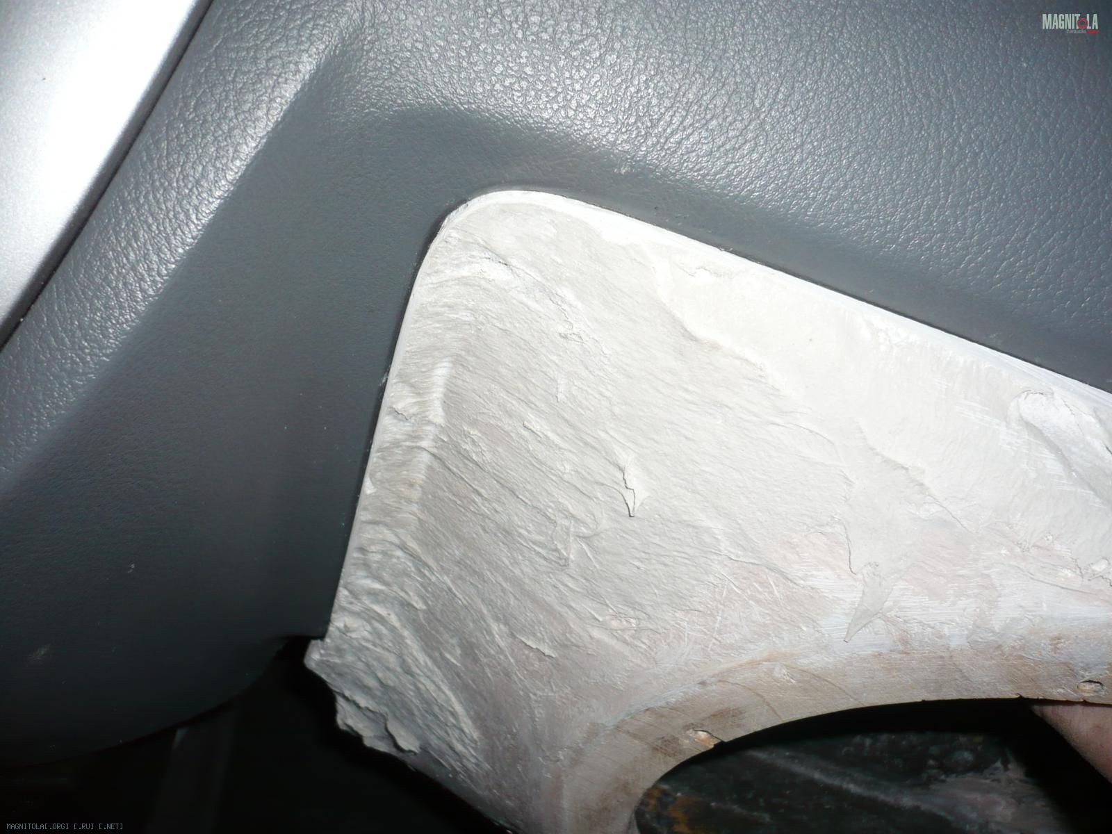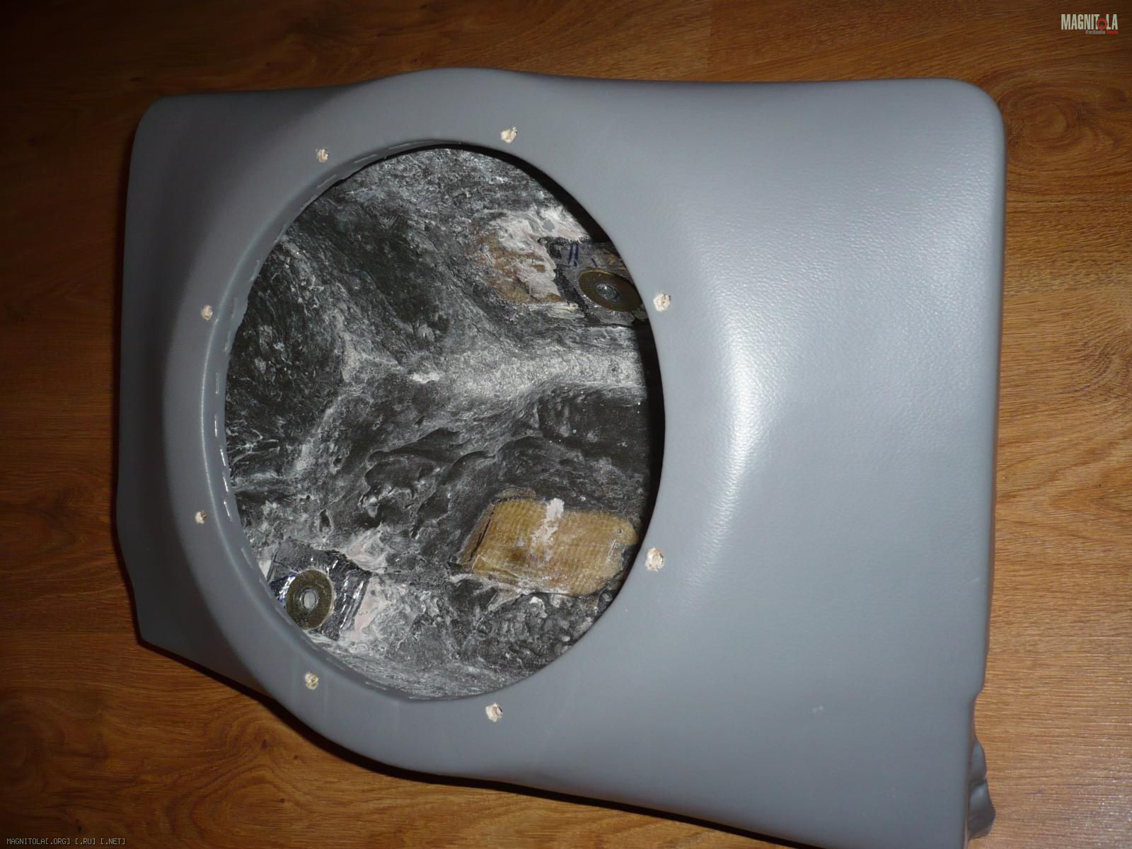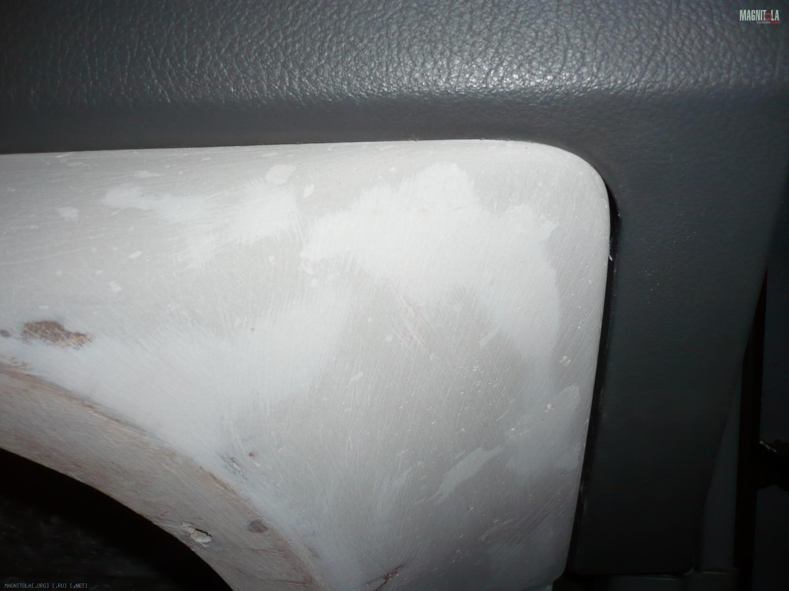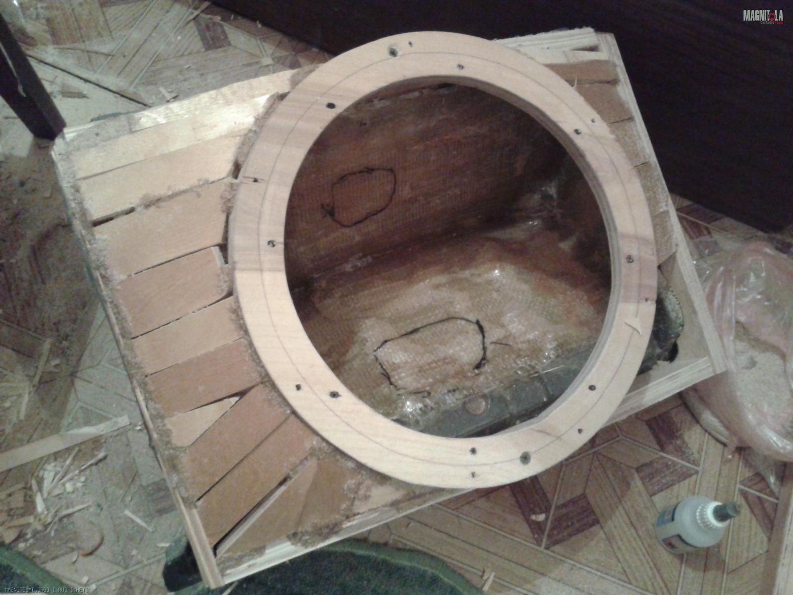 Внутри ящик промазал смесью полеэфирки с цементом. Получилось просто камень! Примерял постоянно в авто! По периметру ящика и торпедо оставил зазор(около 2 мм),что бы полностью исключить соприкосновение саба и торпедо. Крепление саба только на каркасе кузова(ну об этом чуть позже)