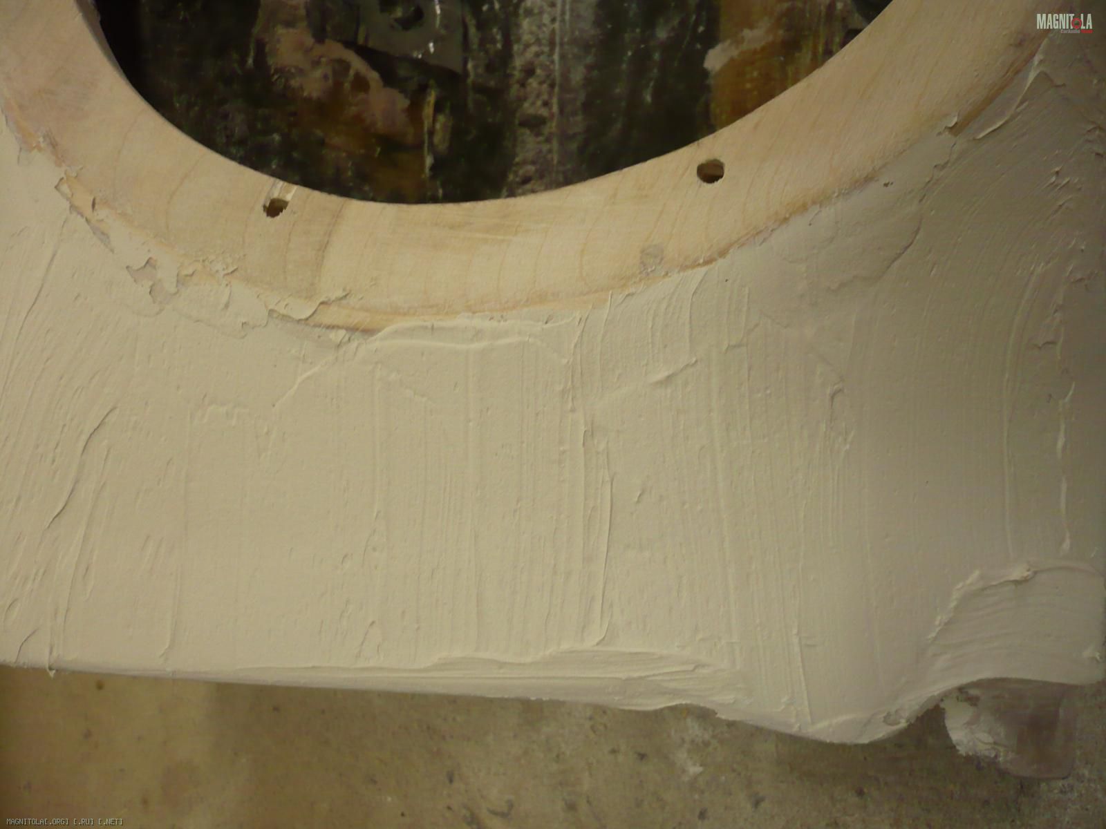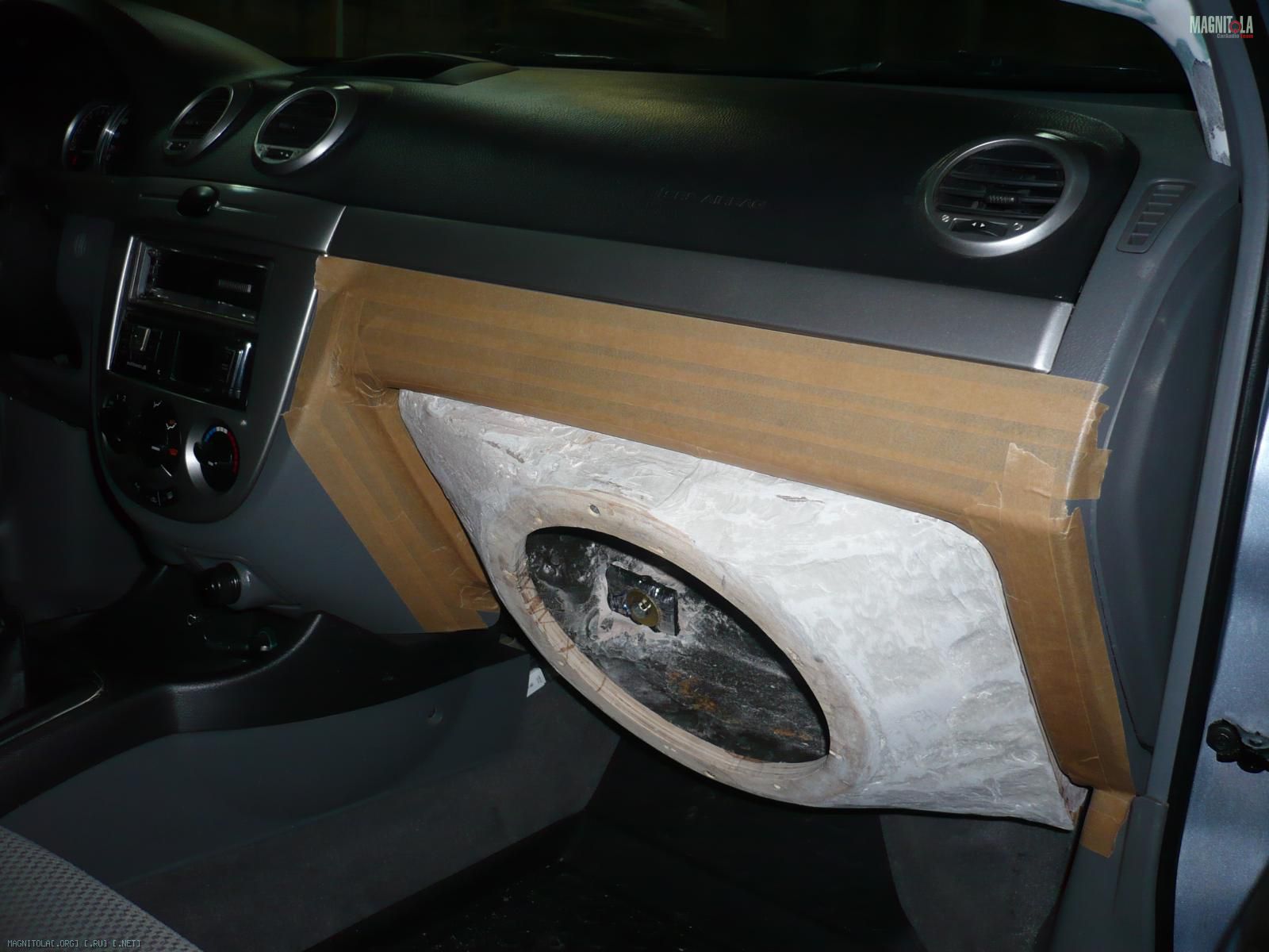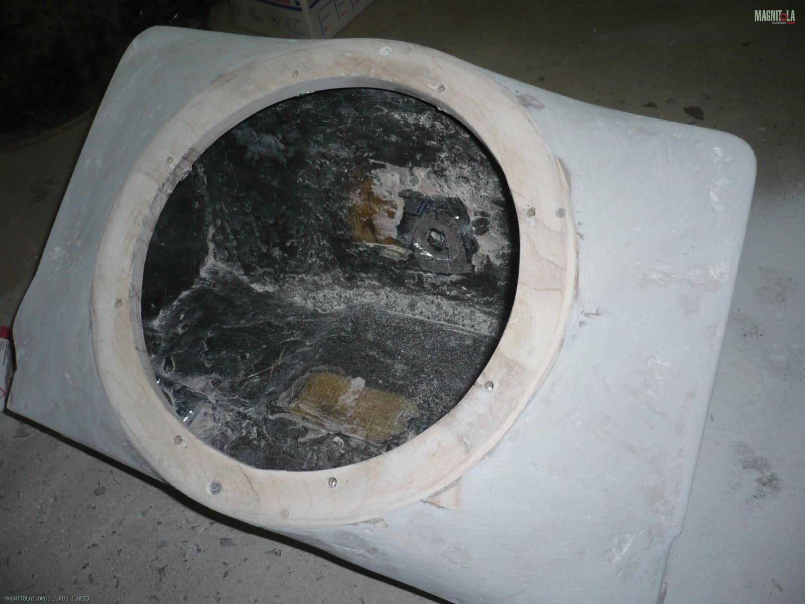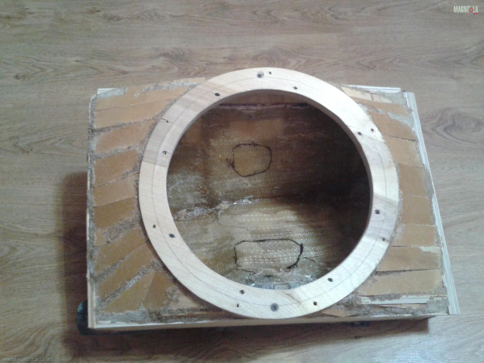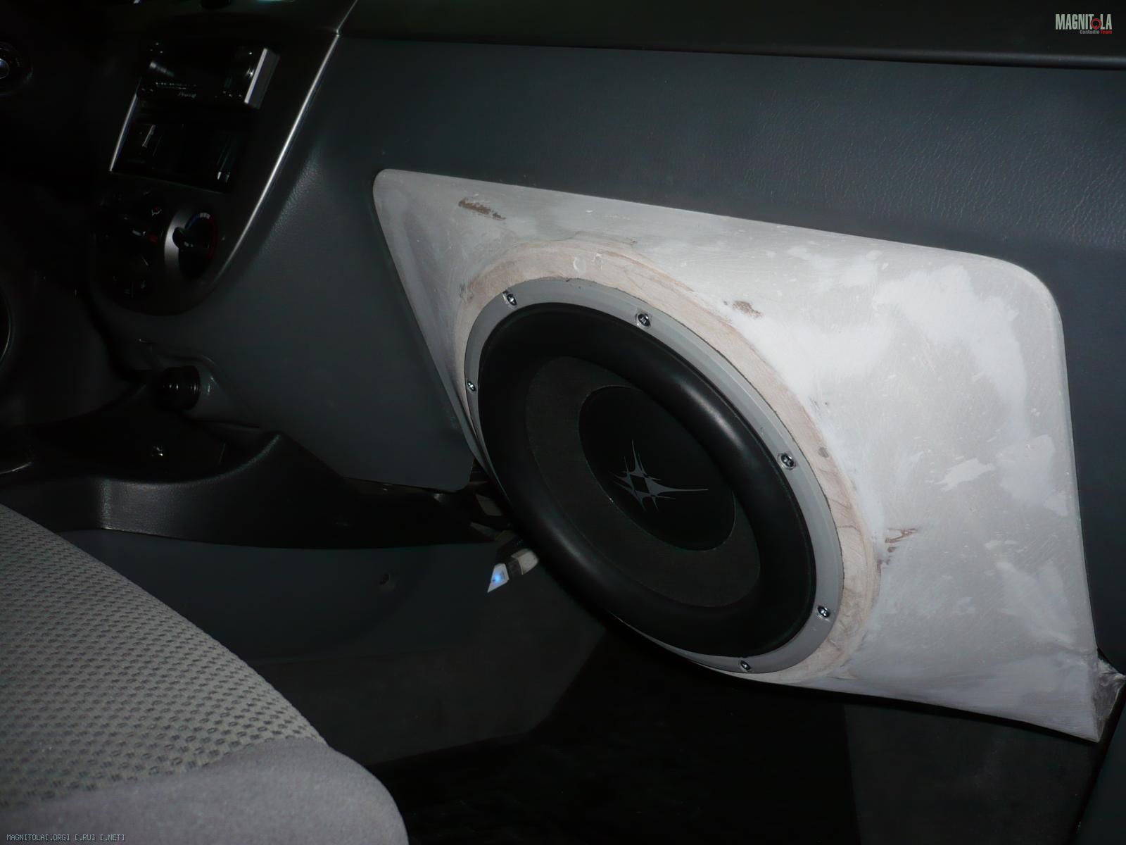 Внутри ящик промазал смесью полеэфирки с цементом. Получилось просто камень! Примерял постоянно в авто! По периметру ящика и торпедо оставил зазор(около 2 мм),что бы полностью исключить соприкосновение саба и торпедо. Крепление саба только на каркасе кузова(ну об этом чуть позже)