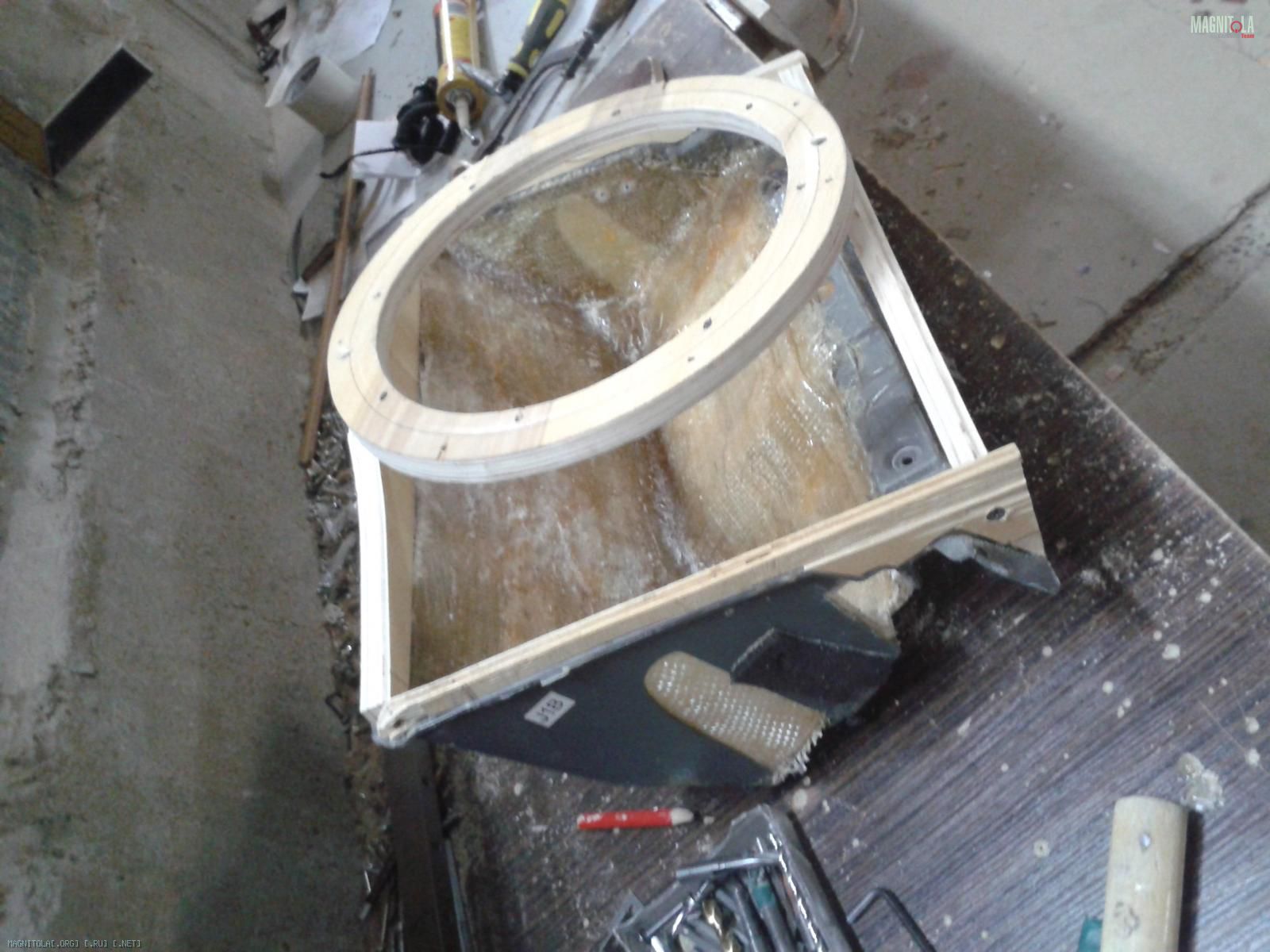 Обклеенную рамку вытащил и притащил в гараж.По периметру сделал обводку из фанеры,что бы как можно ровнее можно было вывести прилегающую форму в месте стыковки с торпедо,и закрепил окончательно опорное кольцо: