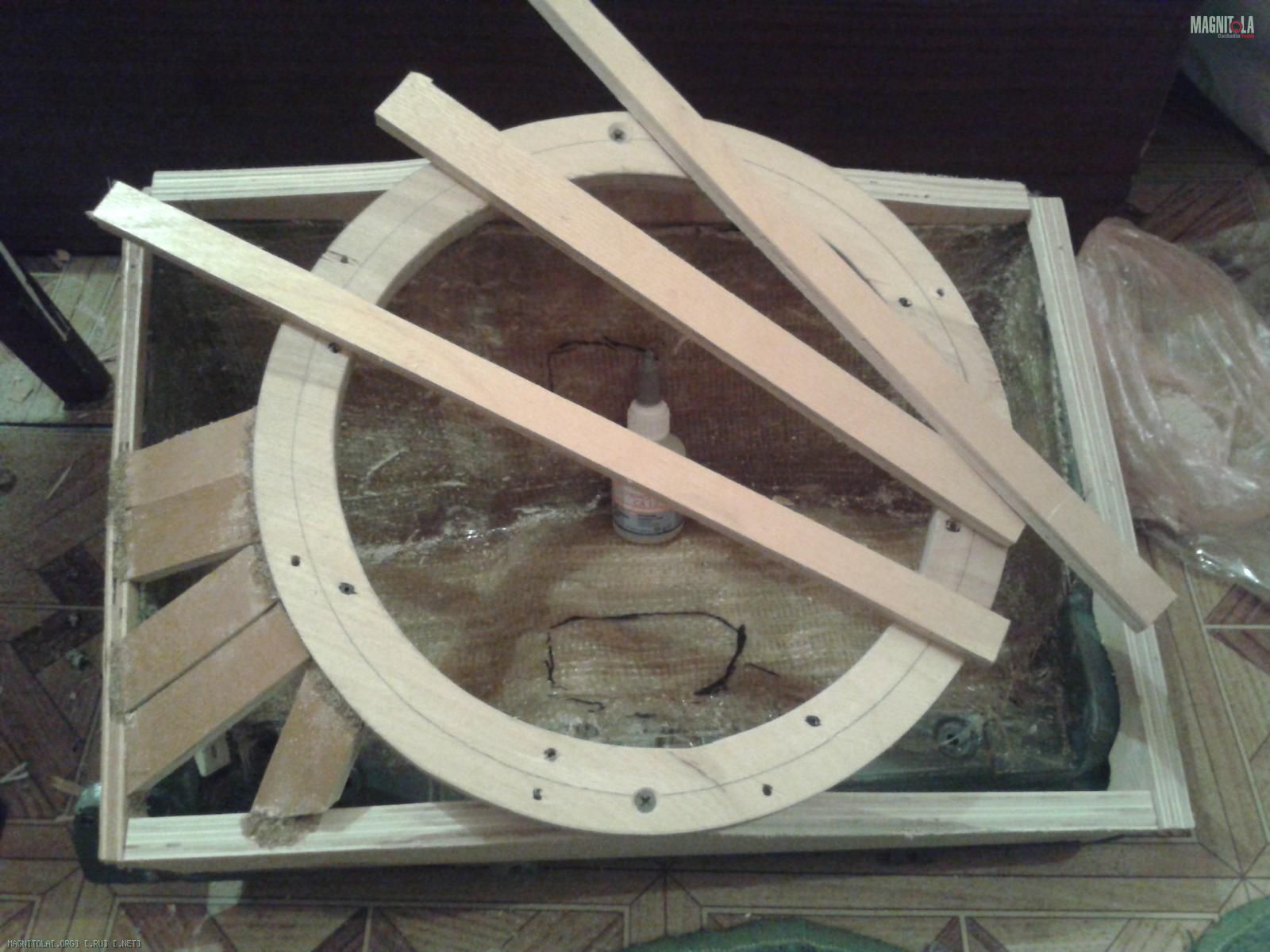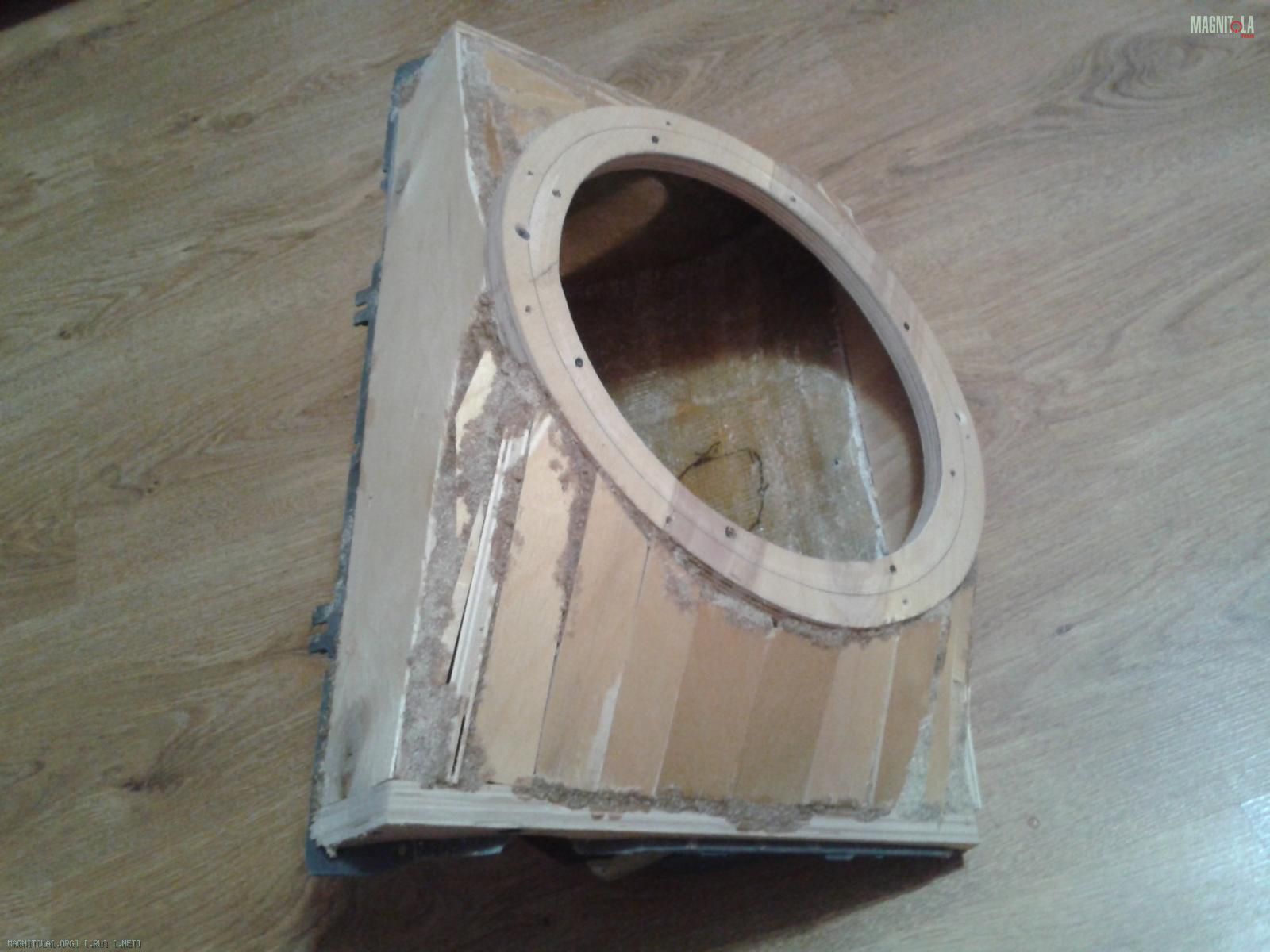 Ну со стоечками под вч всё немного проще пошло. Направление то же,что и сч,в плоскости. Единственное подвигал вч относительно сч по глубине(ближе дальше). Вся эта прослушка заняла около недели. Конечный вариант: вч чуть притопленны относительно сч до выравнивания катушек сч/вч. Технология всё то же самое,что и при изготовлении подиумов сч:
