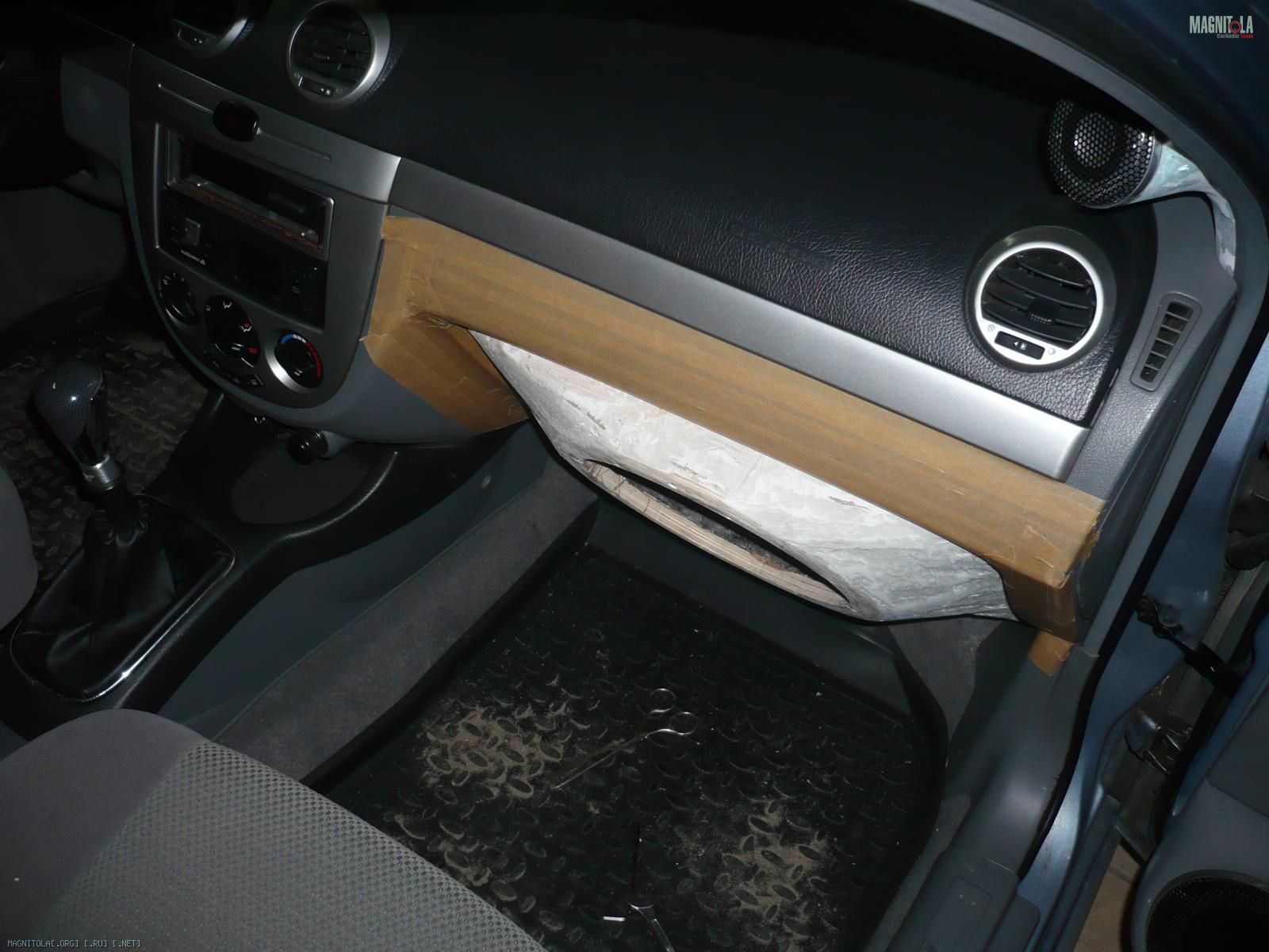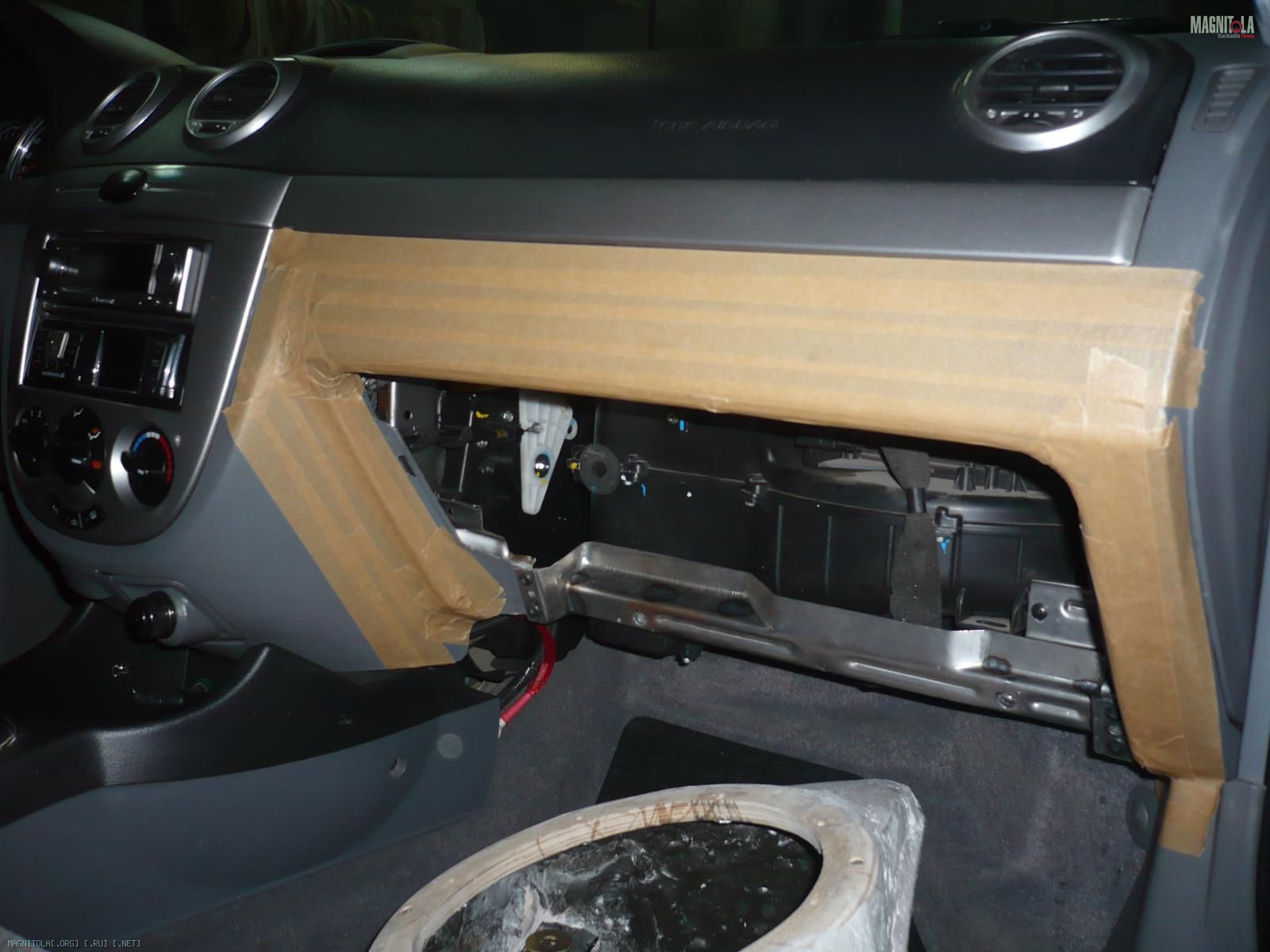 Ну а дальше самый гемор млин...Обклеил весь периметр торпедо малярным скотчем в 2-3 слоя,дабы не учупахать салон и свободно вытащить короб