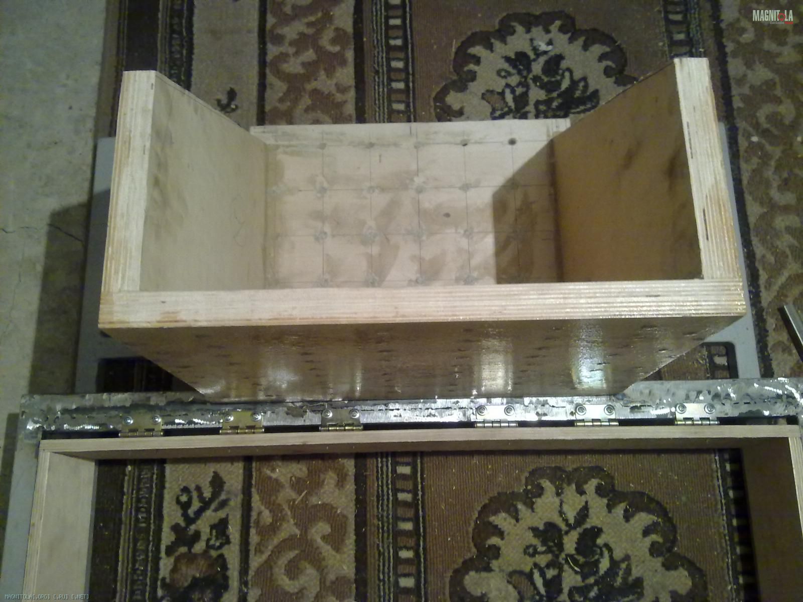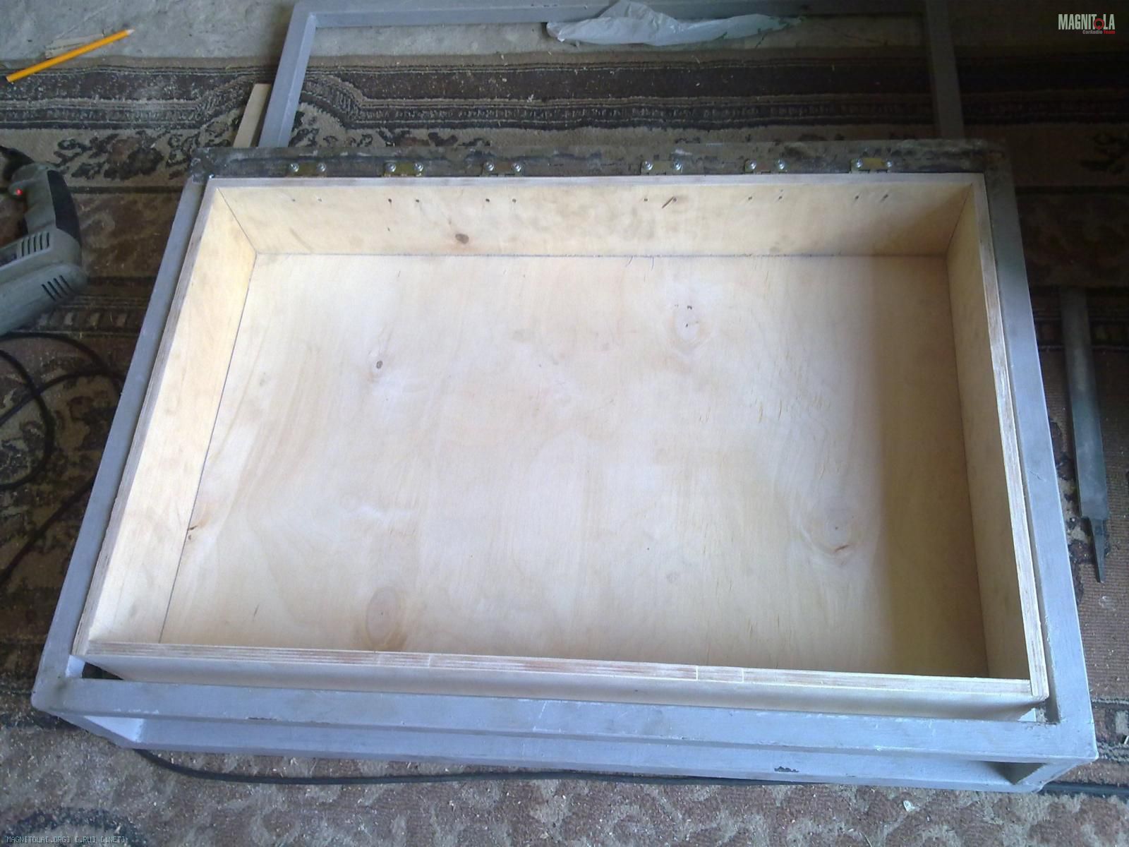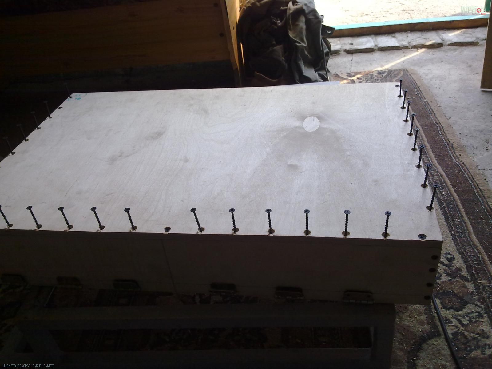 Вот замутил каркас и корпус саба. Вот что получилось. Использовал фанеру 11 мм. соединял все на жидкие гвозди и саморезы,толщина всех стенок стала больше 20 мм.Обьем ящика 27 литров.Еще заказал токорю металлическое кольцо.Поставлю его внутри ящика нарежу резьбу и прикреплю динамик на болты. Каркас из 25 профиля.