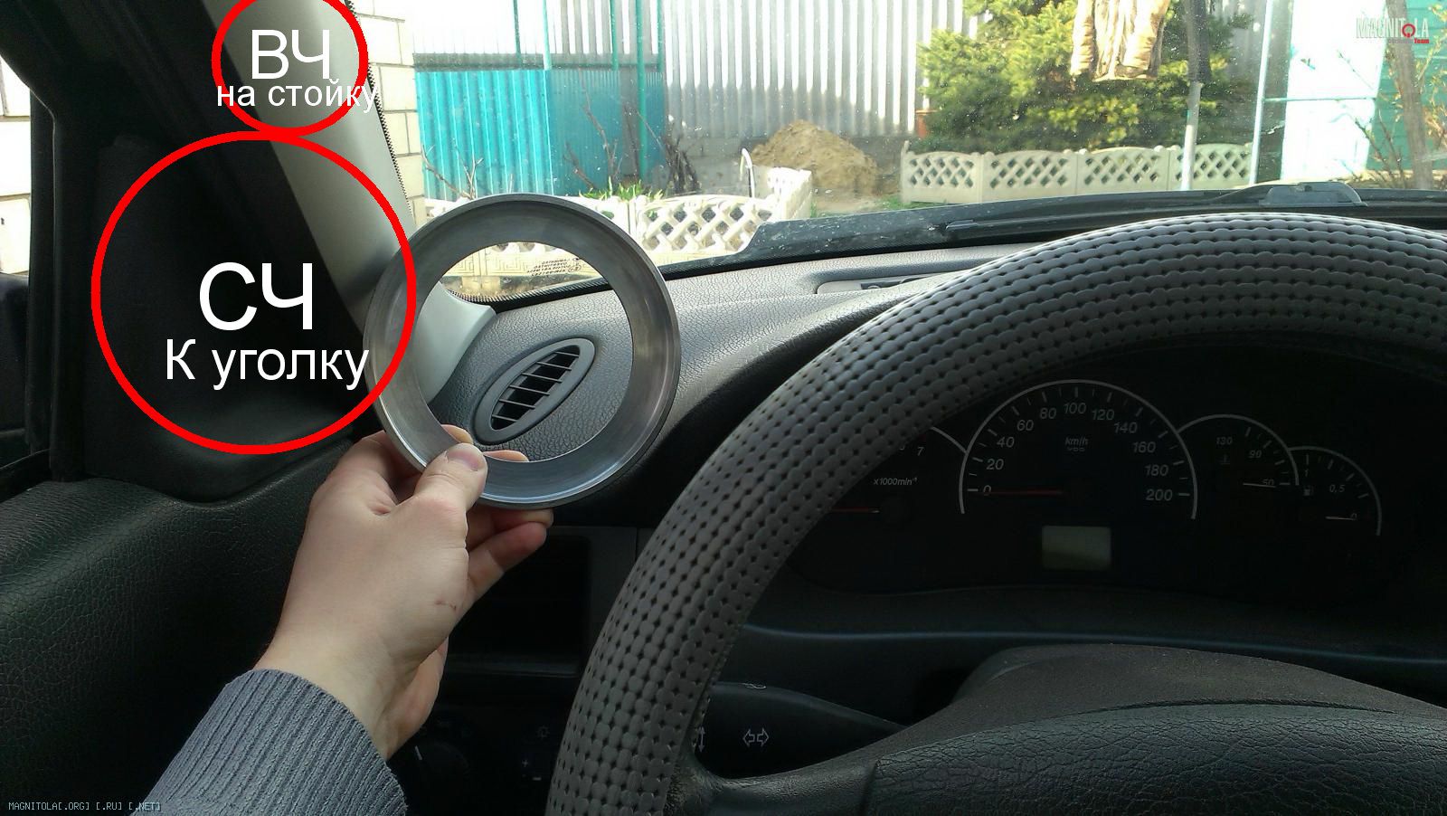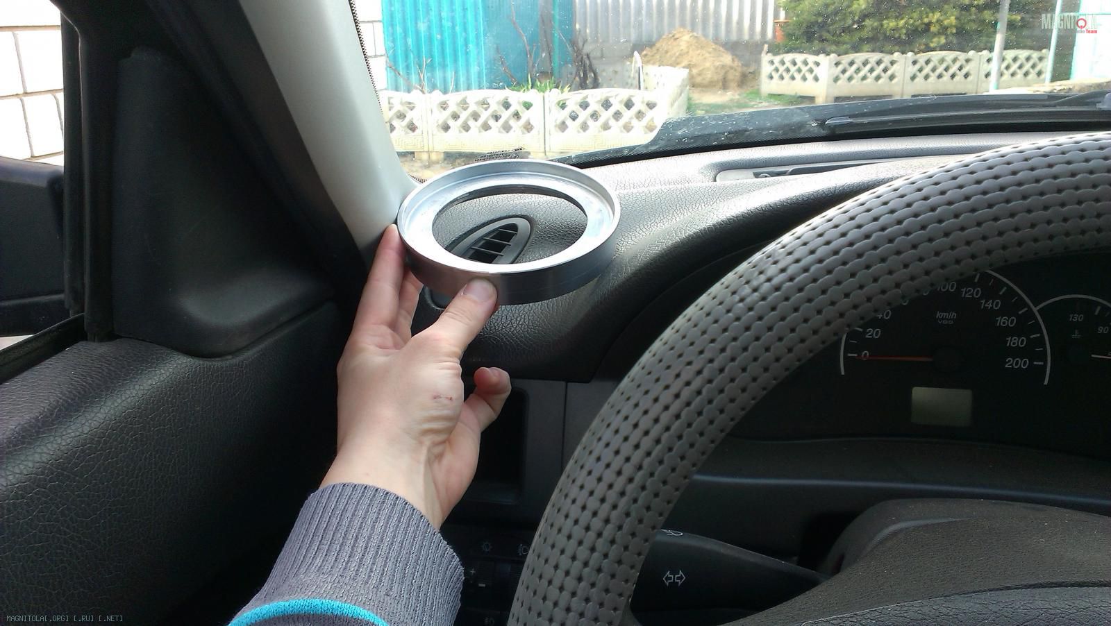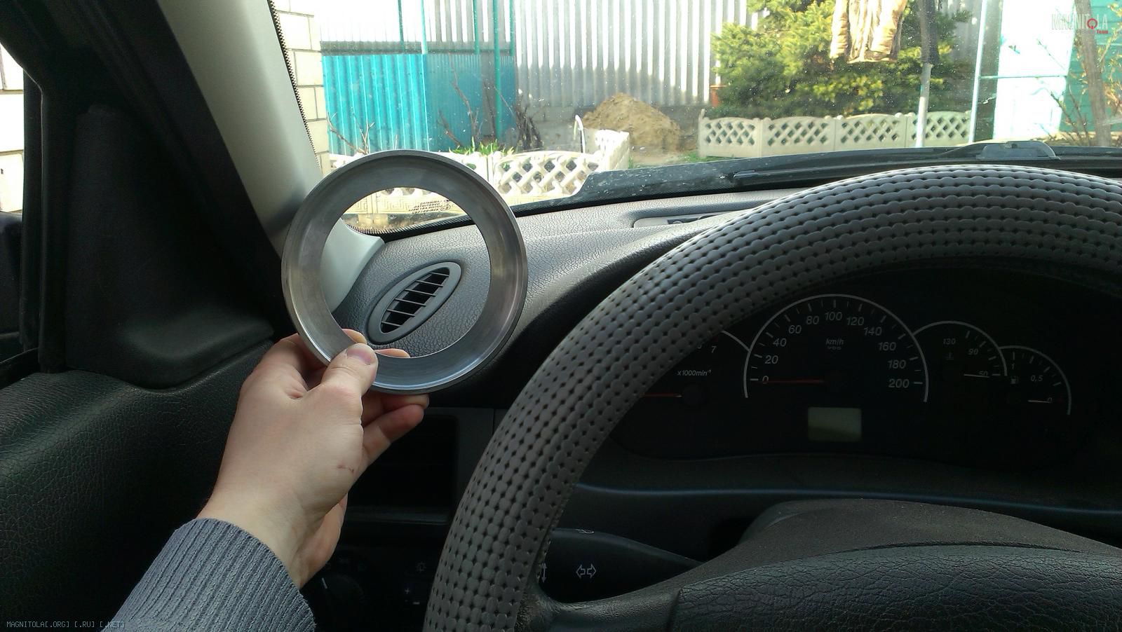 Пару замечаний, пока не начал лепить подики... Кольца в диаметре можно сделать меньше, если не использовать штатное кольцо гриля, а выточить само кольцо с учетом установки сеточки... Как пример, подсмотри, я себе так делал на вч... И я думаю что такой высоты кольцо не стоит делать, ты красиво не сделаешь подиум, будет переход... А по установке-имхо только в уголок зеркала, больше некуда их ставить...