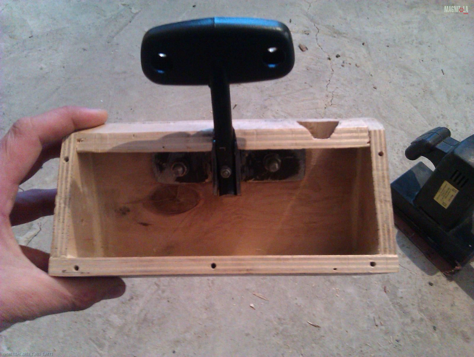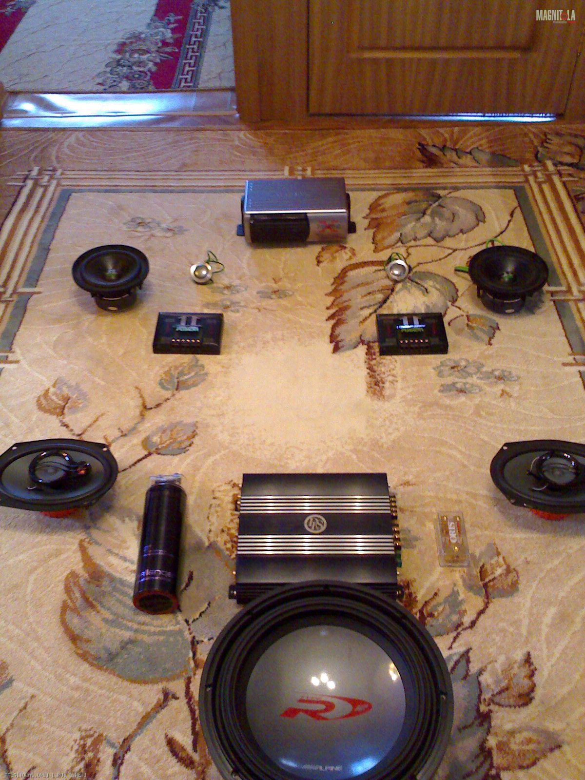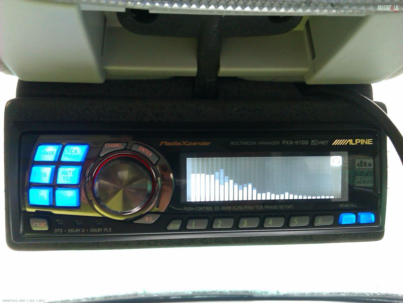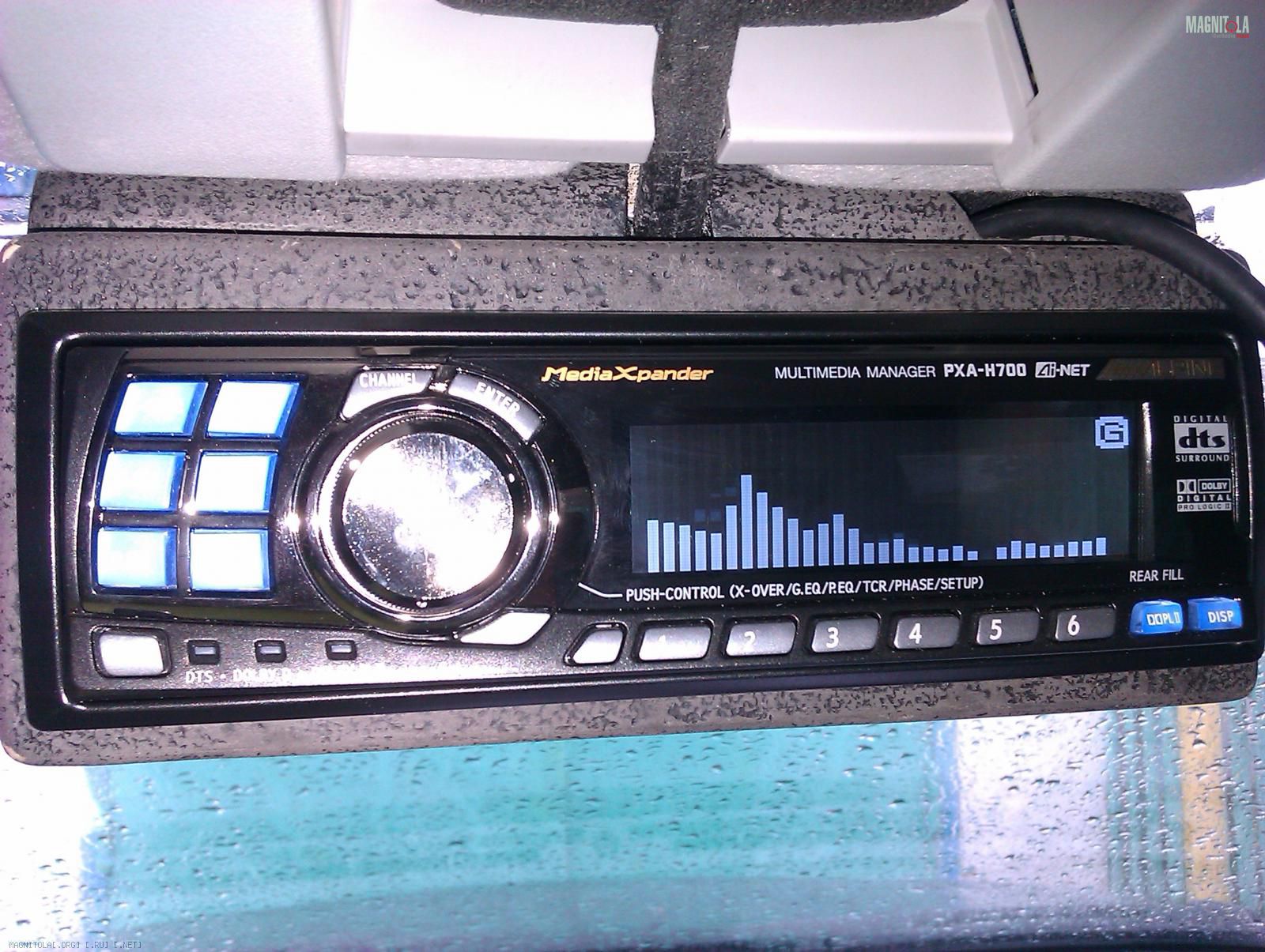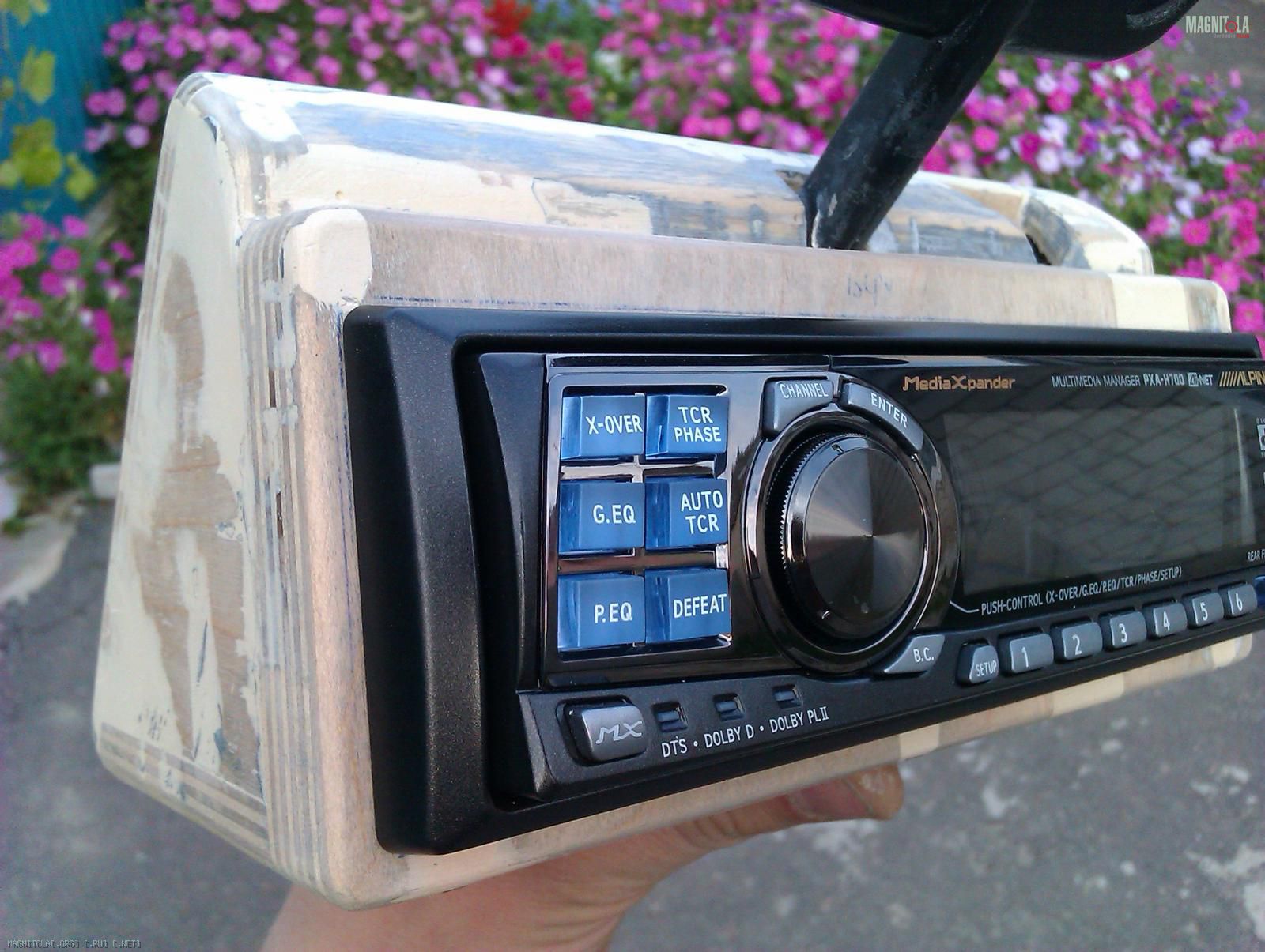А в планах 3-х полосный фронт и саб. Все на 700-м процессоре и по возможности поконально. Вот он уже куплен и очень долго был в коробке в шкафу! Первое что я сделал, так это определил его панель.Долго думал куда ее поставить. Сильно хотел вмонтировать ее в потолочную консоль но места для нее не нашлось.Вот и решил убрать зеркало заднего вида,а ее поставить вместо него.Заводское зеркало отложил не стал ломать а купил другое и позаимствовал у него ножку! потом с металла дополнил еще креплением которое все держит ( плохо,что ножка не металлическая). Долго выравнивал! но когда все получилось скрепил их болтиком.С фанеры соорудил коробку и покрасил антигравием.