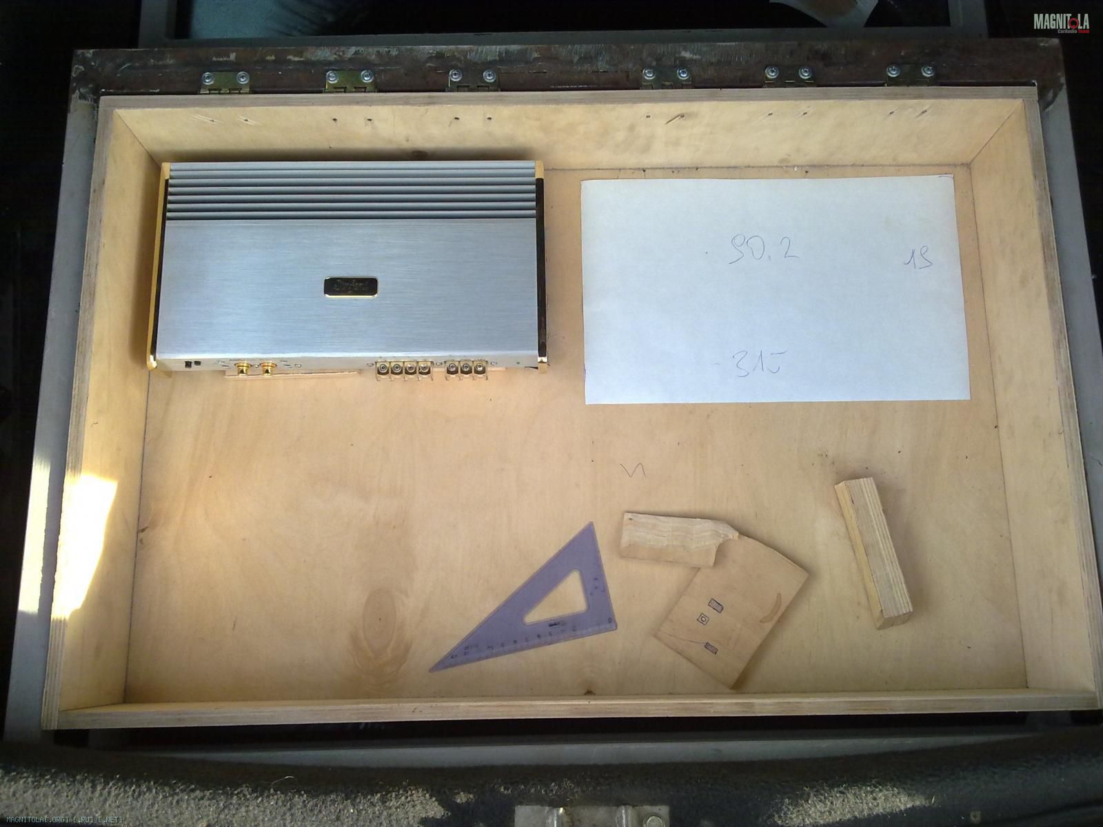 А в планах 3-х полосный фронт и саб. Все на 700-м процессоре и по возможности поконально. Вот он уже куплен и очень долго был в коробке в шкафу! Первое что я сделал, так это определил его панель.Долго думал куда ее поставить. Сильно хотел вмонтировать ее в потолочную консоль но места для нее не нашлось.Вот и решил убрать зеркало заднего вида,а ее поставить вместо него.Заводское зеркало отложил не стал ломать а купил другое и позаимствовал у него ножку! потом с металла дополнил еще креплением которое все держит ( плохо,что ножка не металлическая). Долго выравнивал! но когда все получилось скрепил их болтиком.С фанеры соорудил коробку и покрасил антигравием.
