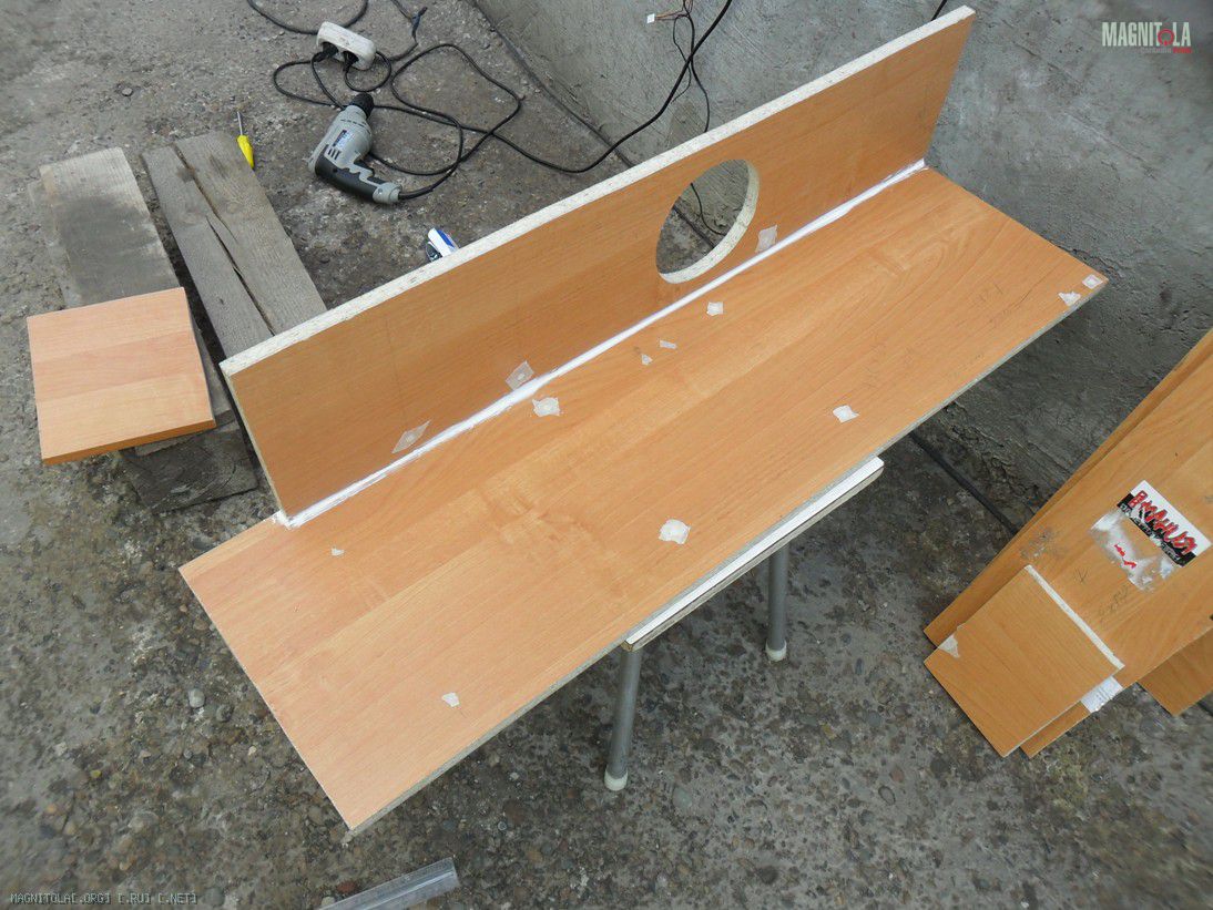 Сделал полку из дсп 16мм, осталось купить шумки и прикрутить ее....