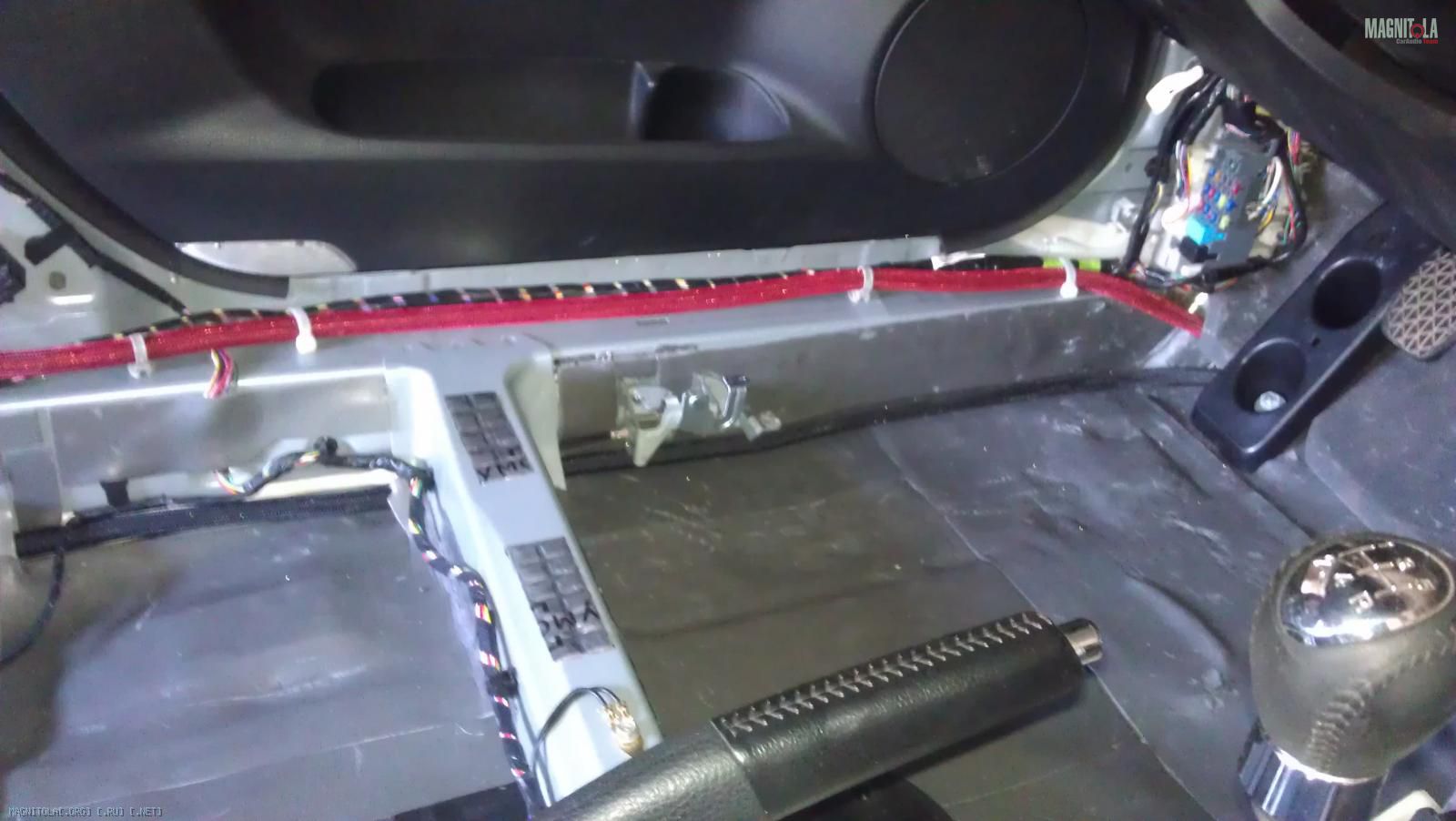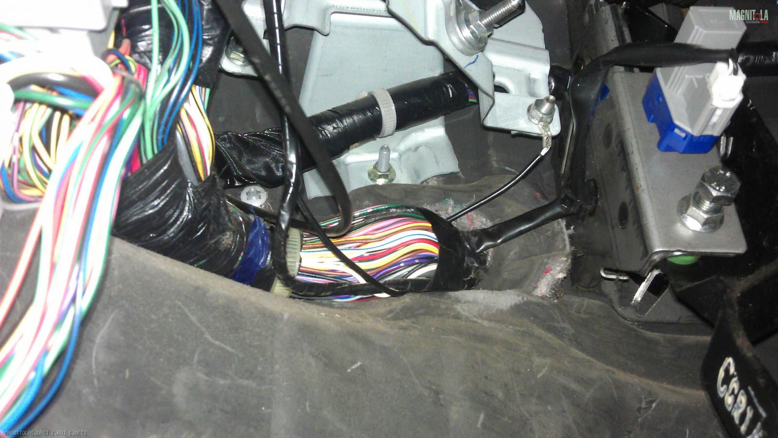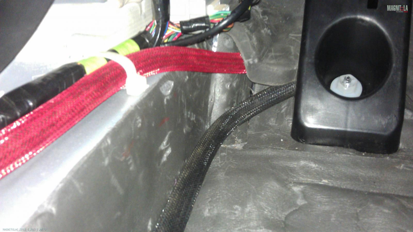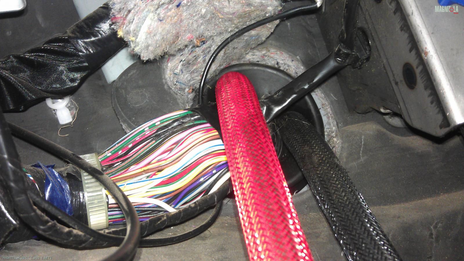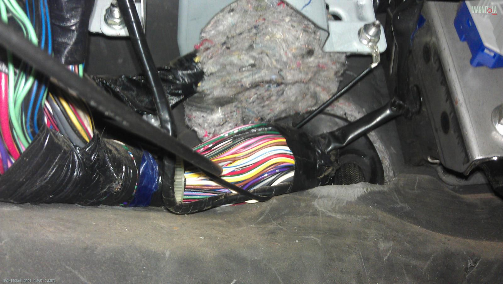 под рулевой колонкой, чуть левее, есть резиновый уплотнитель с кучей проводков, туда без проблем у меня залезло две нулевкигы ГЫ гы