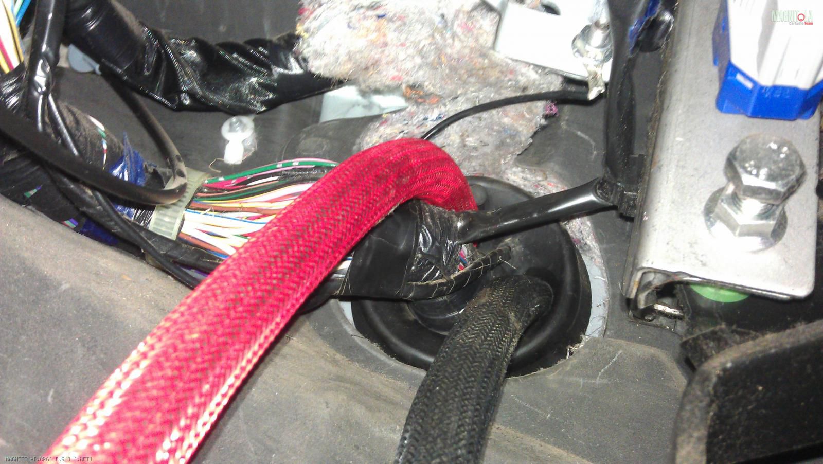 делается это очень просто, берем проволку длинной 200мм, с одной стороны затачиваем поострей, а с другой изолентой хорошенько приматываем кабель. далее смазываем проволку с кабелем маслом, прокалываем резинку и без труда вытаскиваем с другой стороны кабель. все очень просто:smile3: