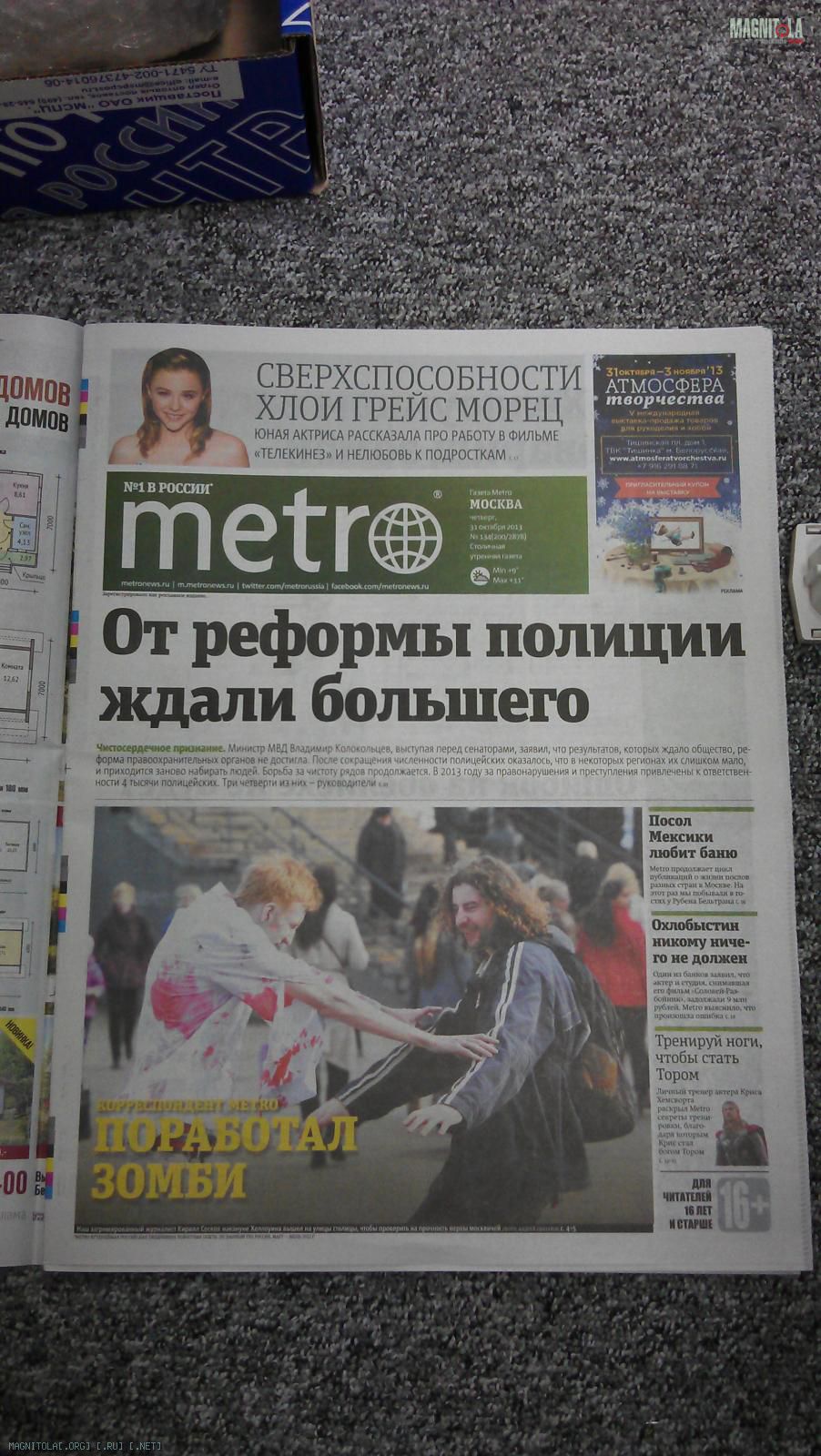 По дороге на работу в метро была взята газета МЕТРО. Вот такая: