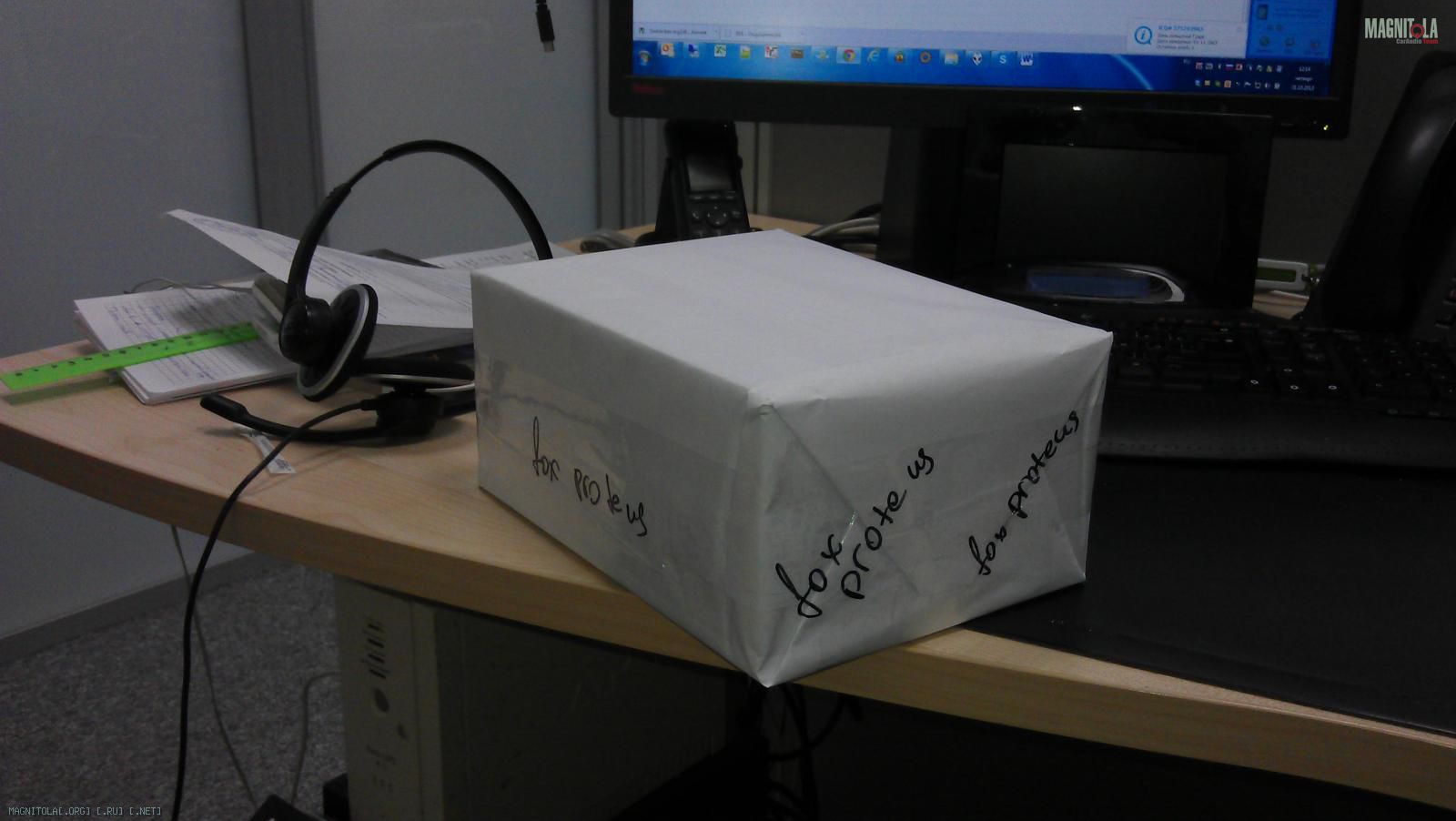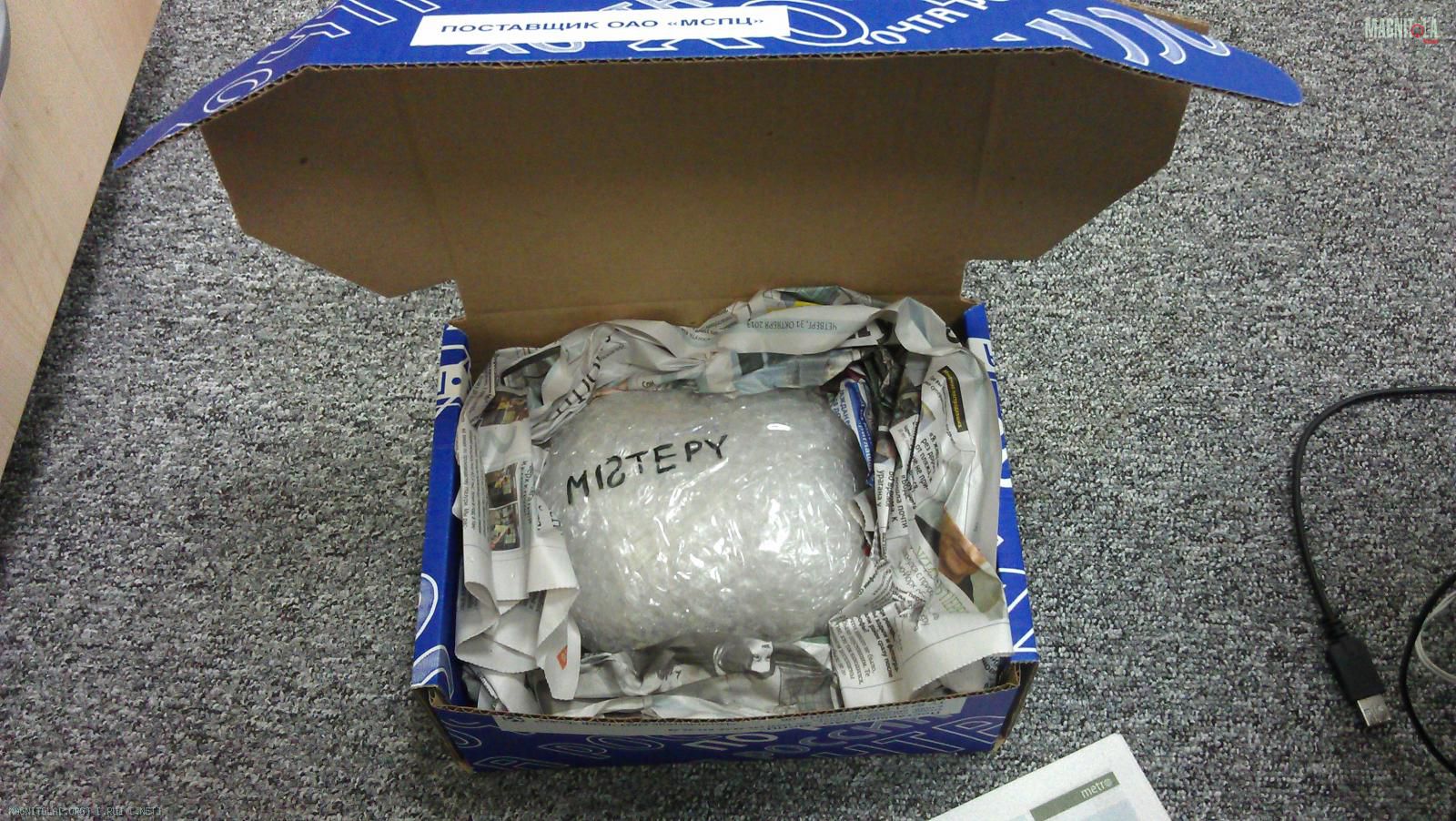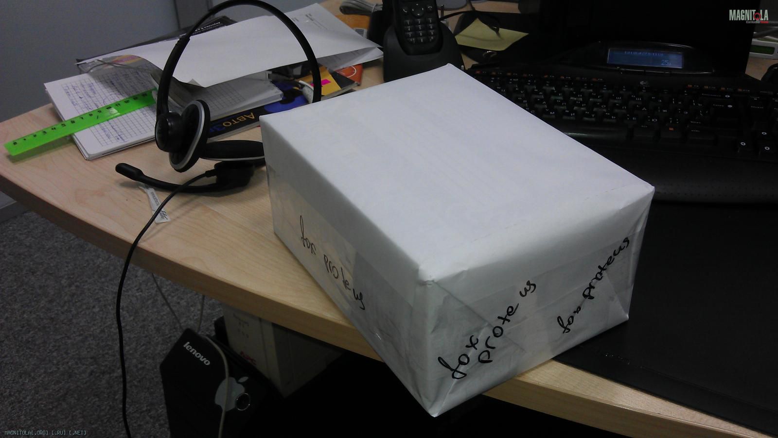 Это всё было вчера. Сегодня утром заходил на почту, забрать чехольчик для телефона жены, заказанный с наебэя и прикупил там коробчонку. А то некрасиво такой комок слать.