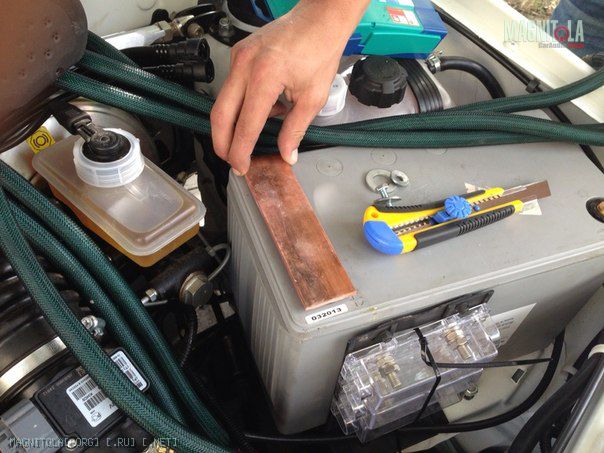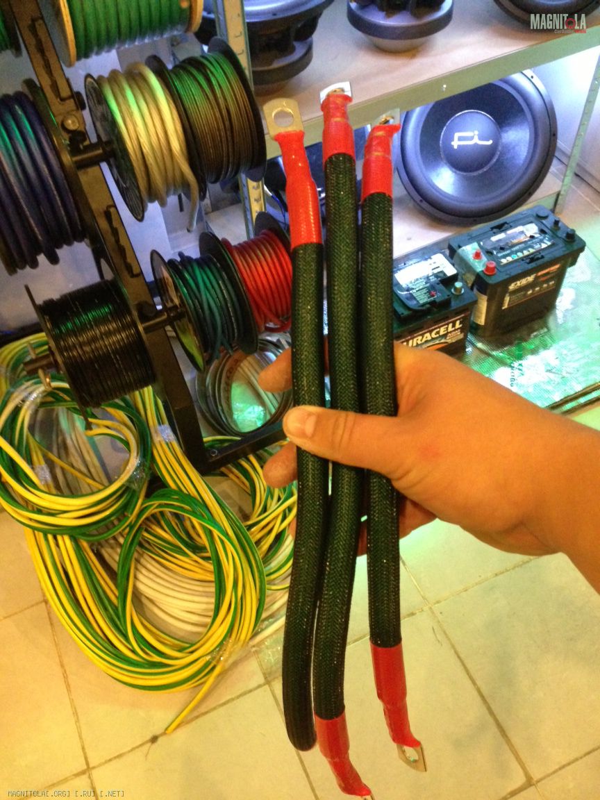 0Ga обжимается в медные клеммы при помощи гидравлики.