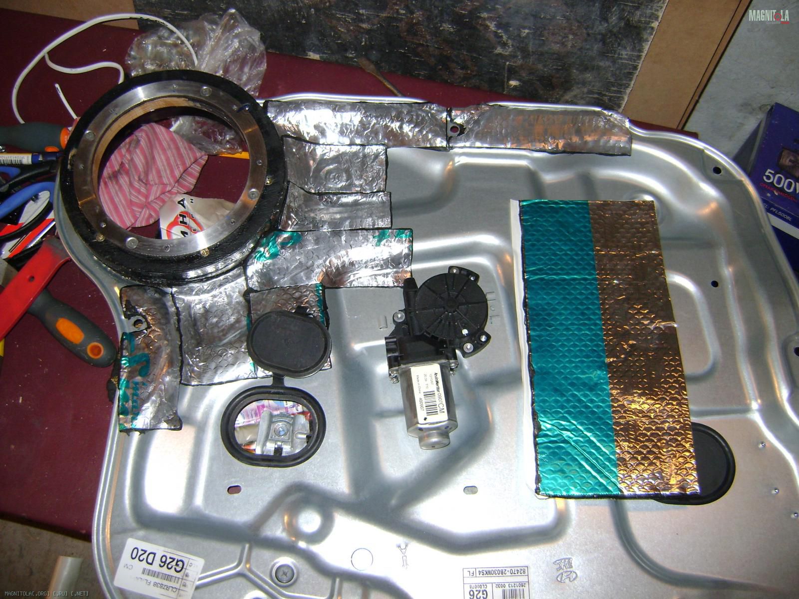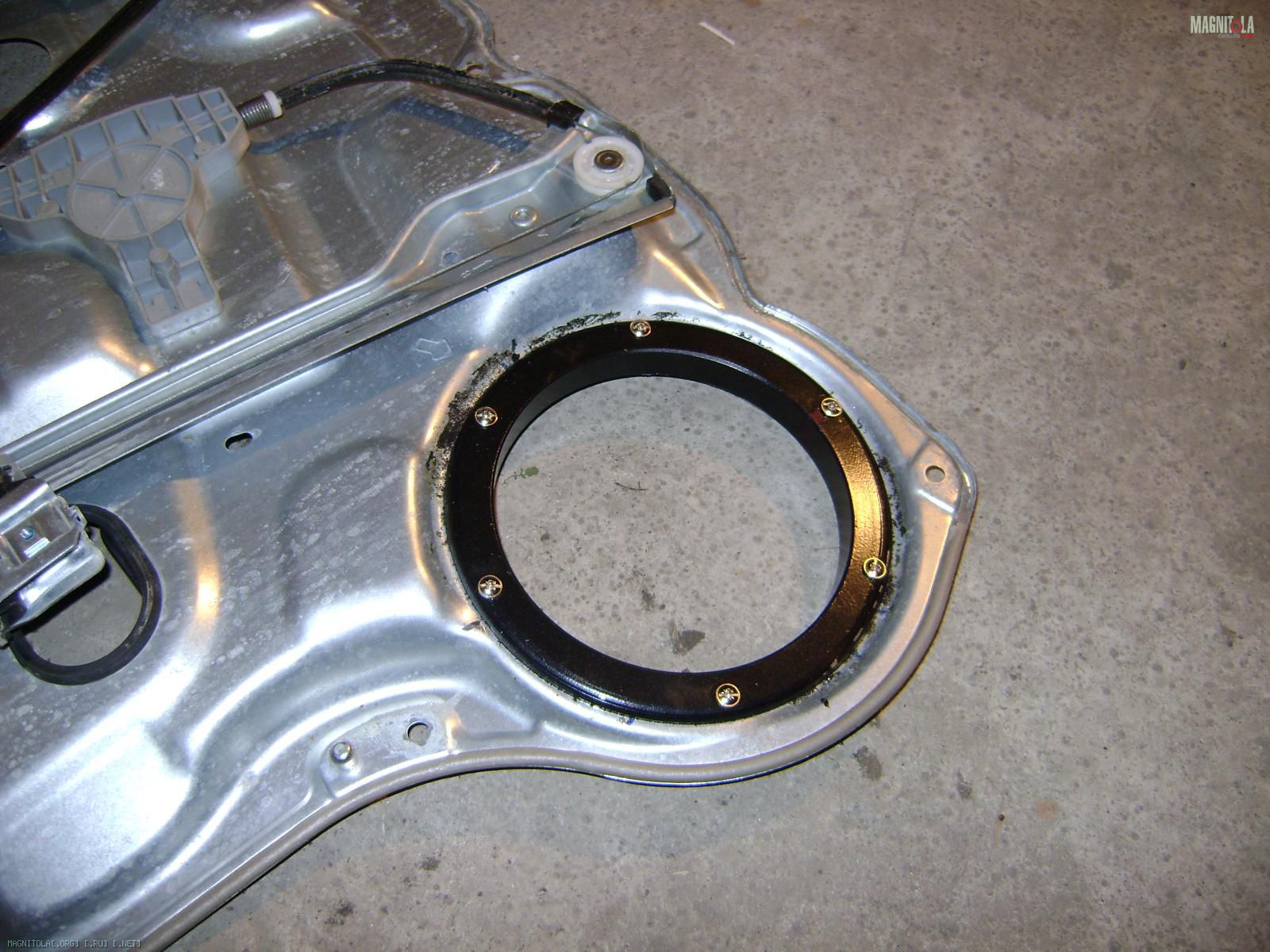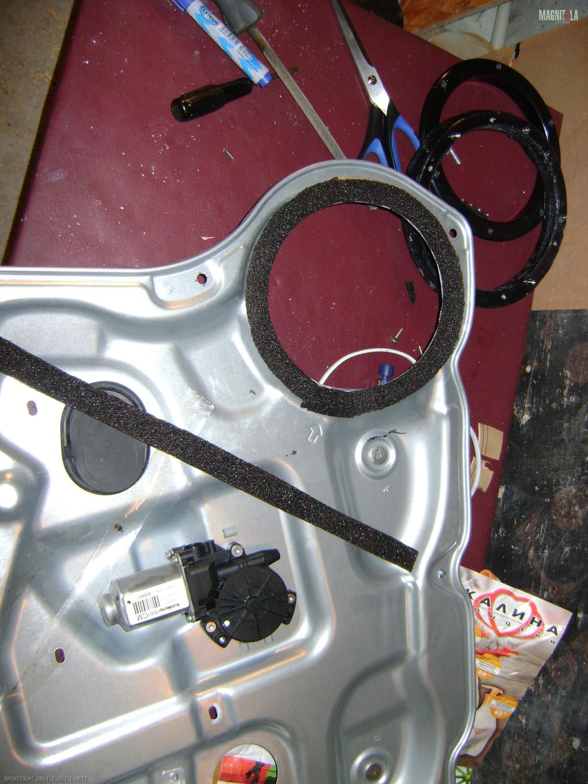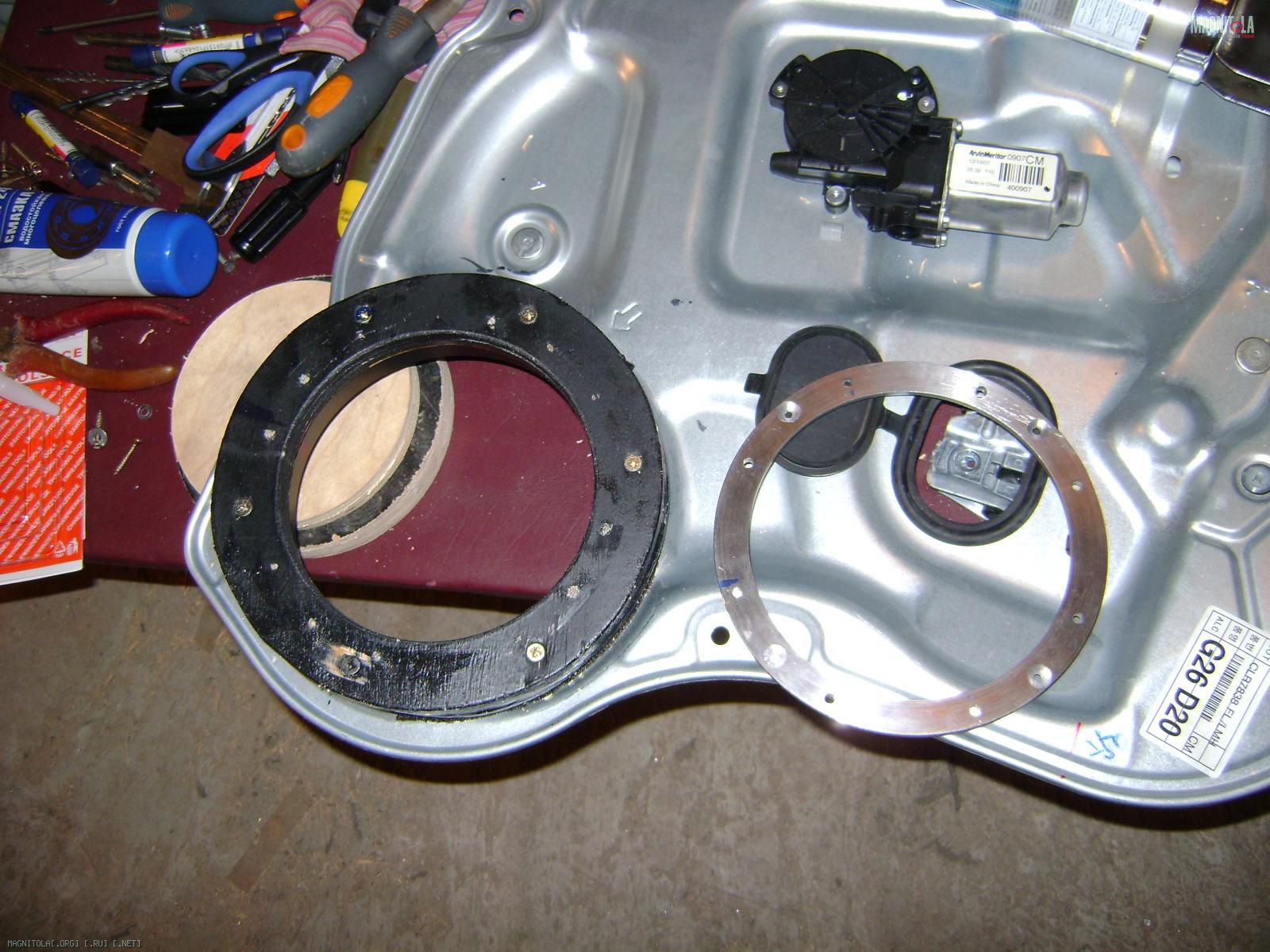 Да-да, я тоже про это читал. Просто я не вижу в этом смысла:) Нижний торец двери сам по себе достаточно жесткий. Если прикрепиться только к нему (а это можно сделать прямо насквозь снизу, хоть саморезами:), но лучше болтами) и к стенке, на которую садится динамик, то тоже будет результат. А чтобы крепиться к усилителю - его надо либо сверлить, либо варить. Вот я бы не стал варить и, тем более, сверлить элемент двери, который отвечает за мою безопасность. Но это лично моя заморочка;)