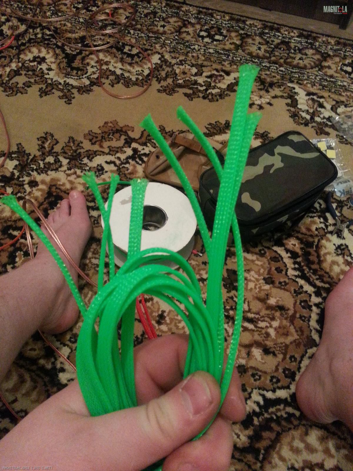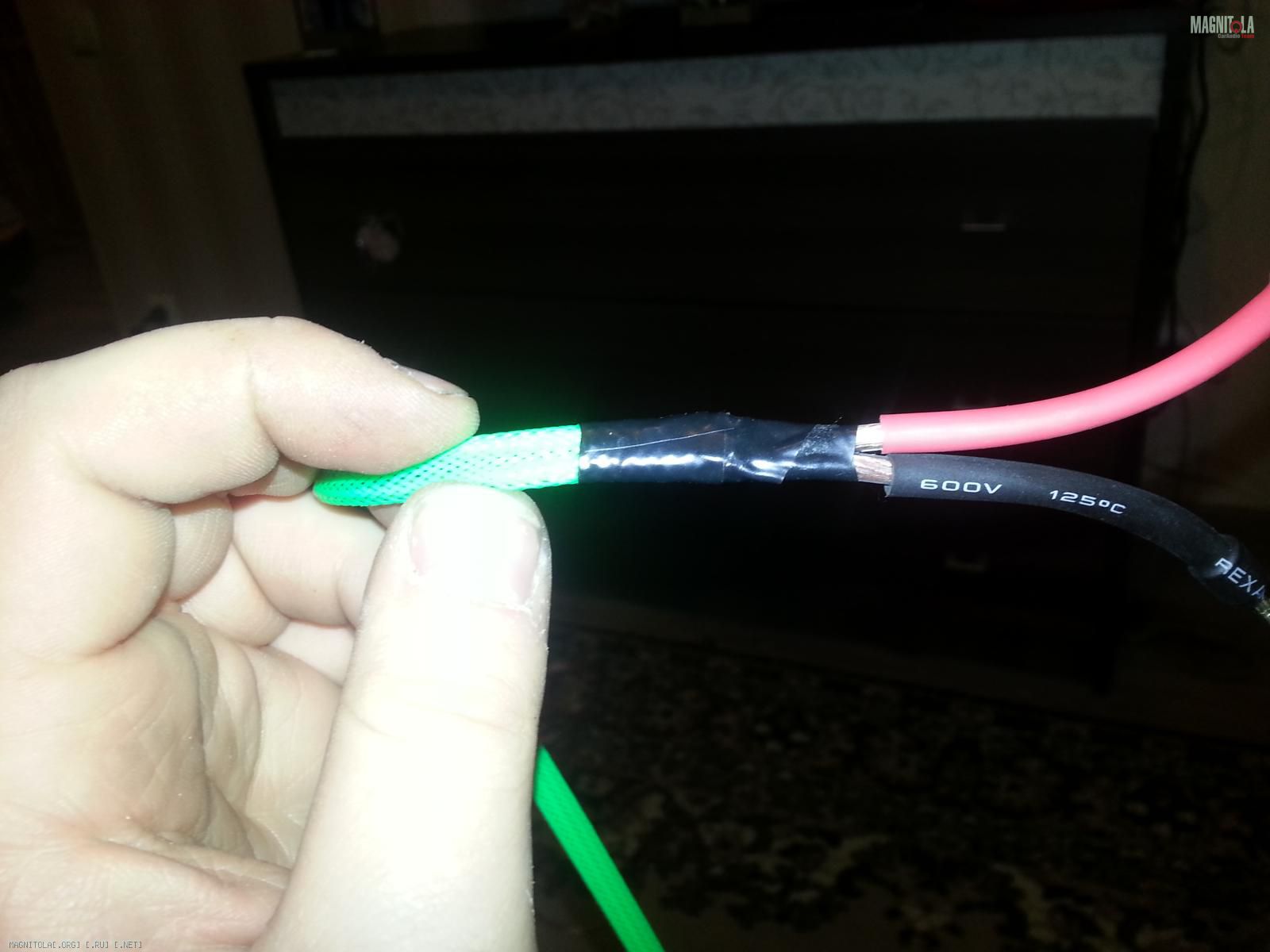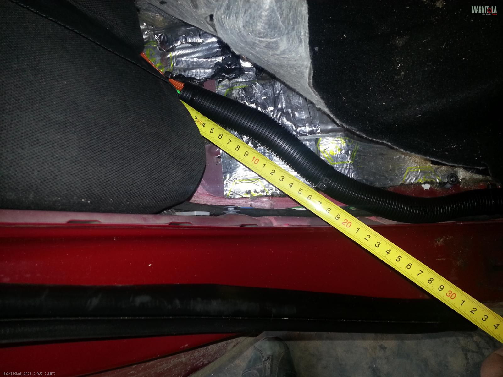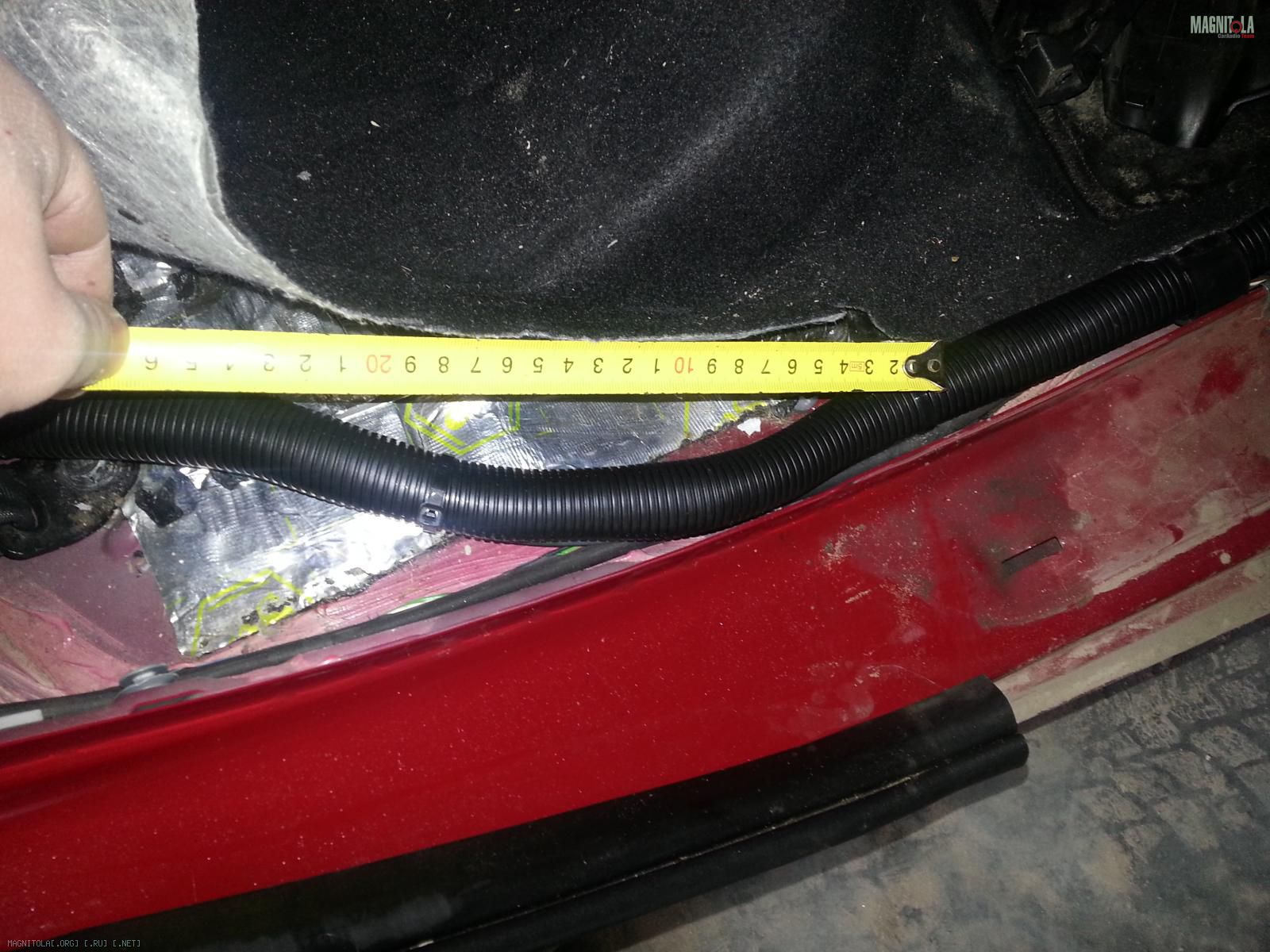 4. дальше для красоты и защиты акустические кабеля были уложены в тюбинг (по-колхозному "в гофру")