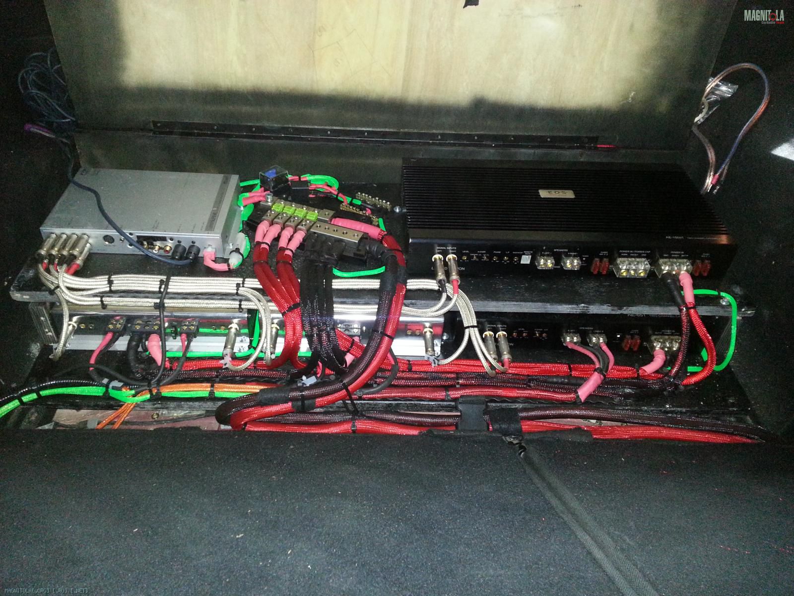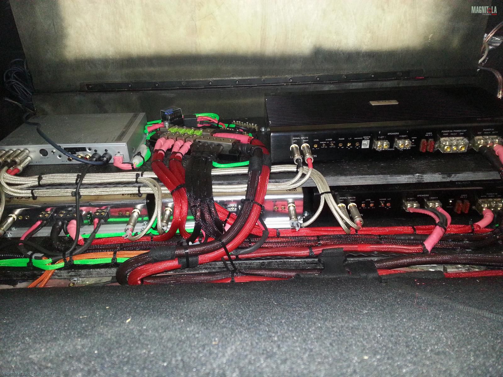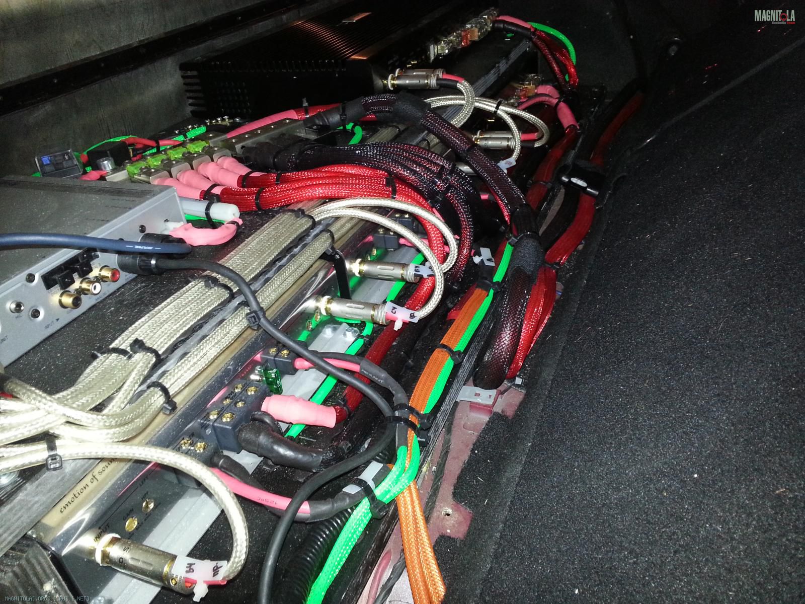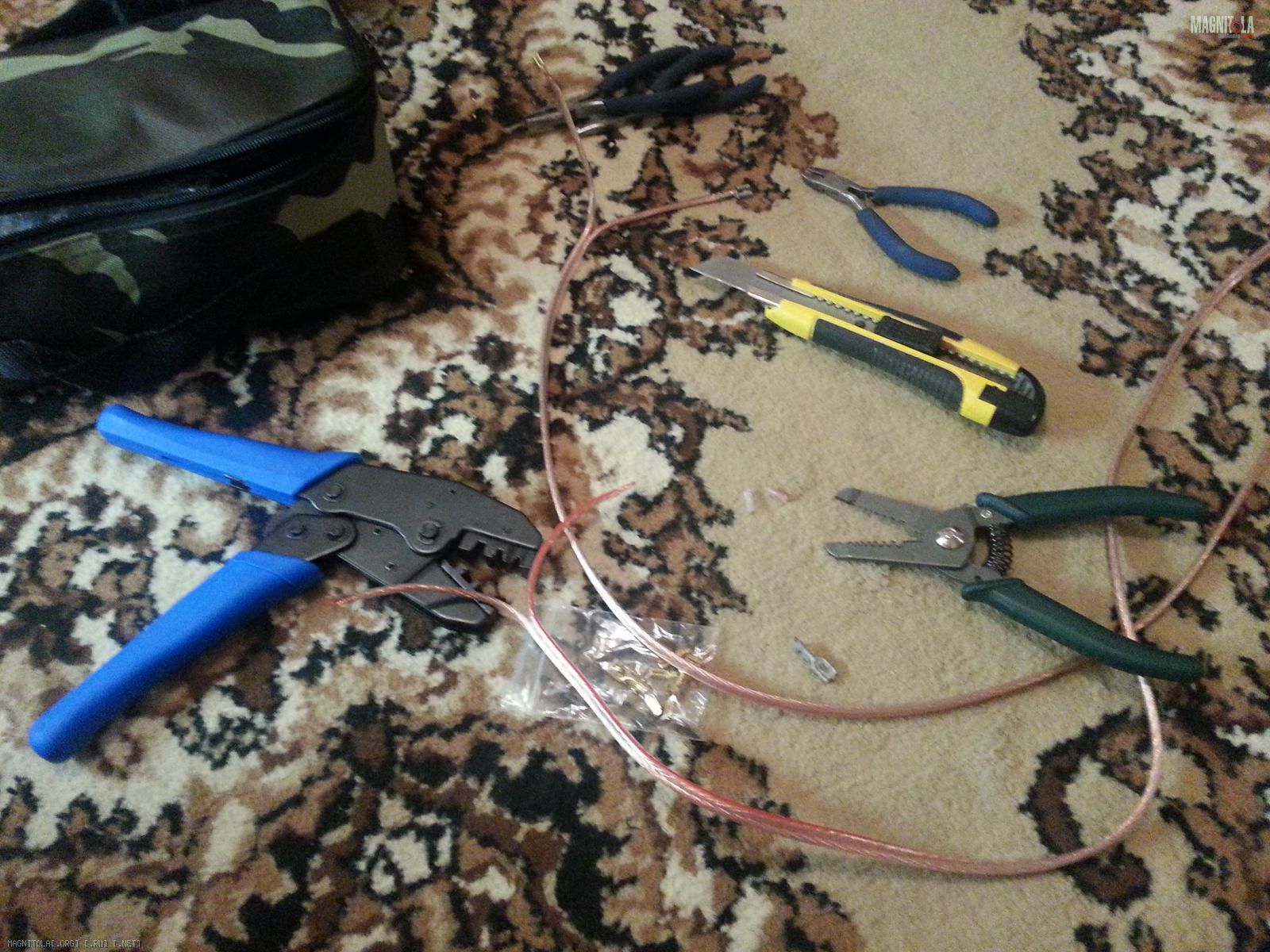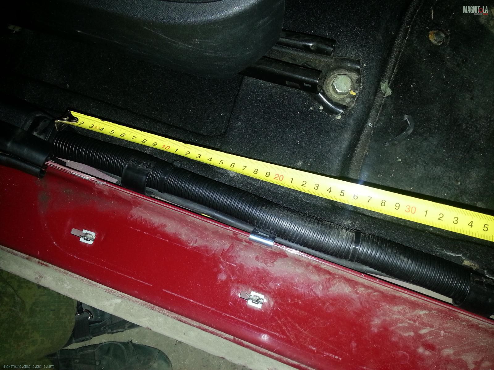 4. дальше для красоты и защиты акустические кабеля были уложены в тюбинг (по-колхозному "в гофру")