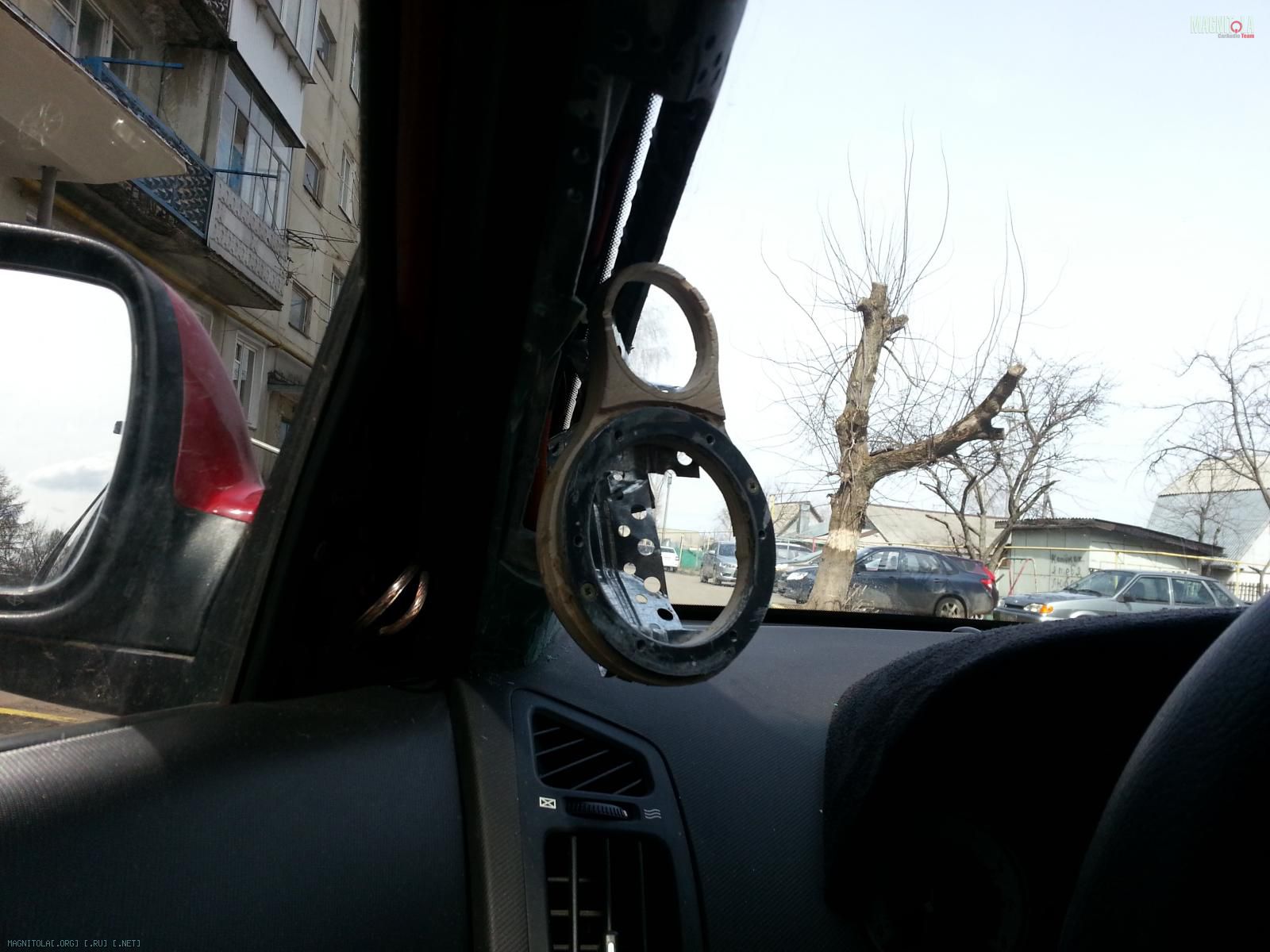 описанию производителя) на передних стойках автомобиля, в треугольниках зеркал или в