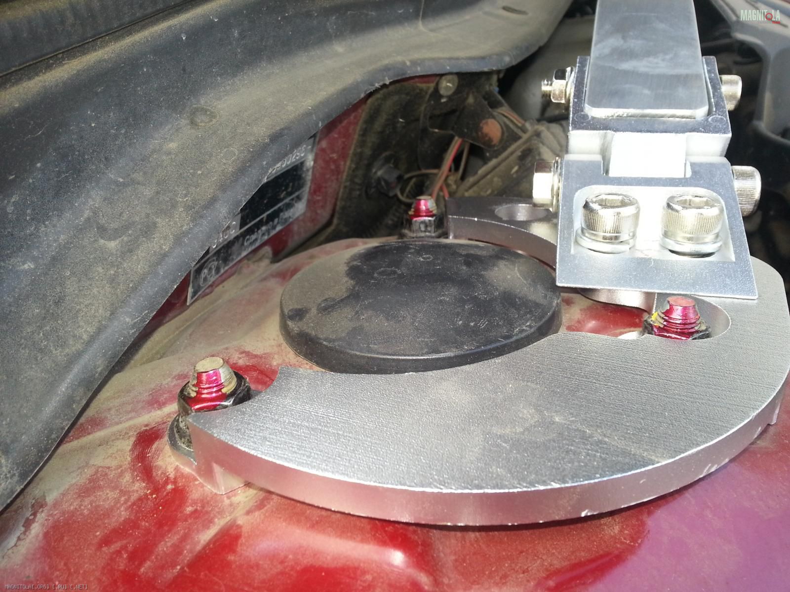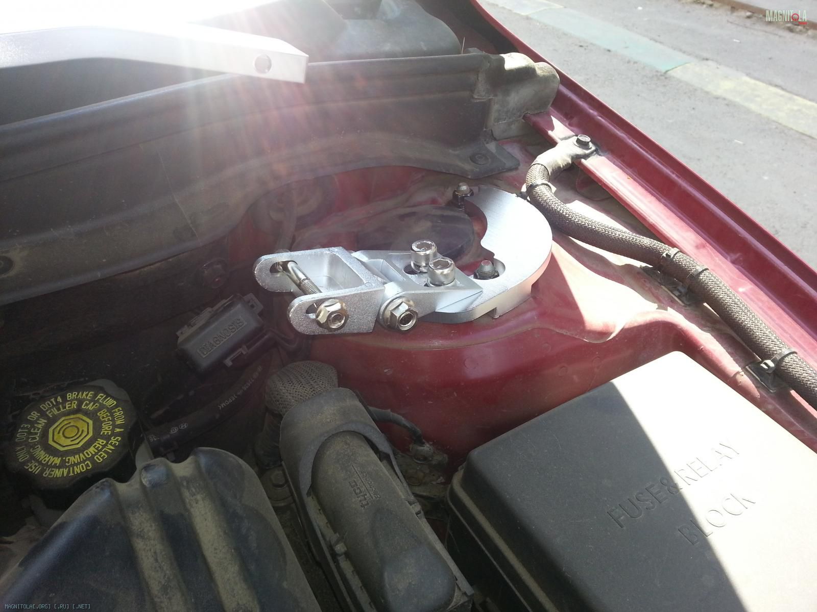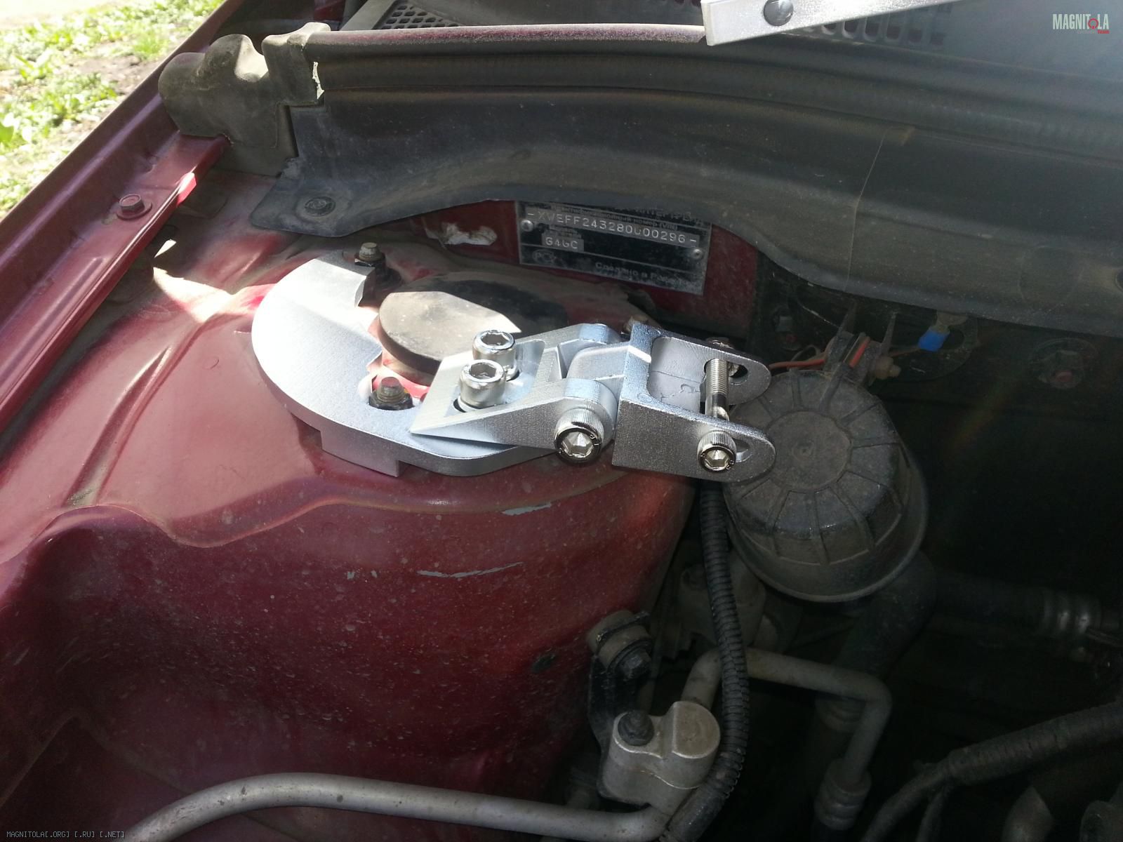 3. ну а дальше все просто! откручиваем головкой на 14 гайки с крепления опорников, на их место опору распорки и затягиваем обратно