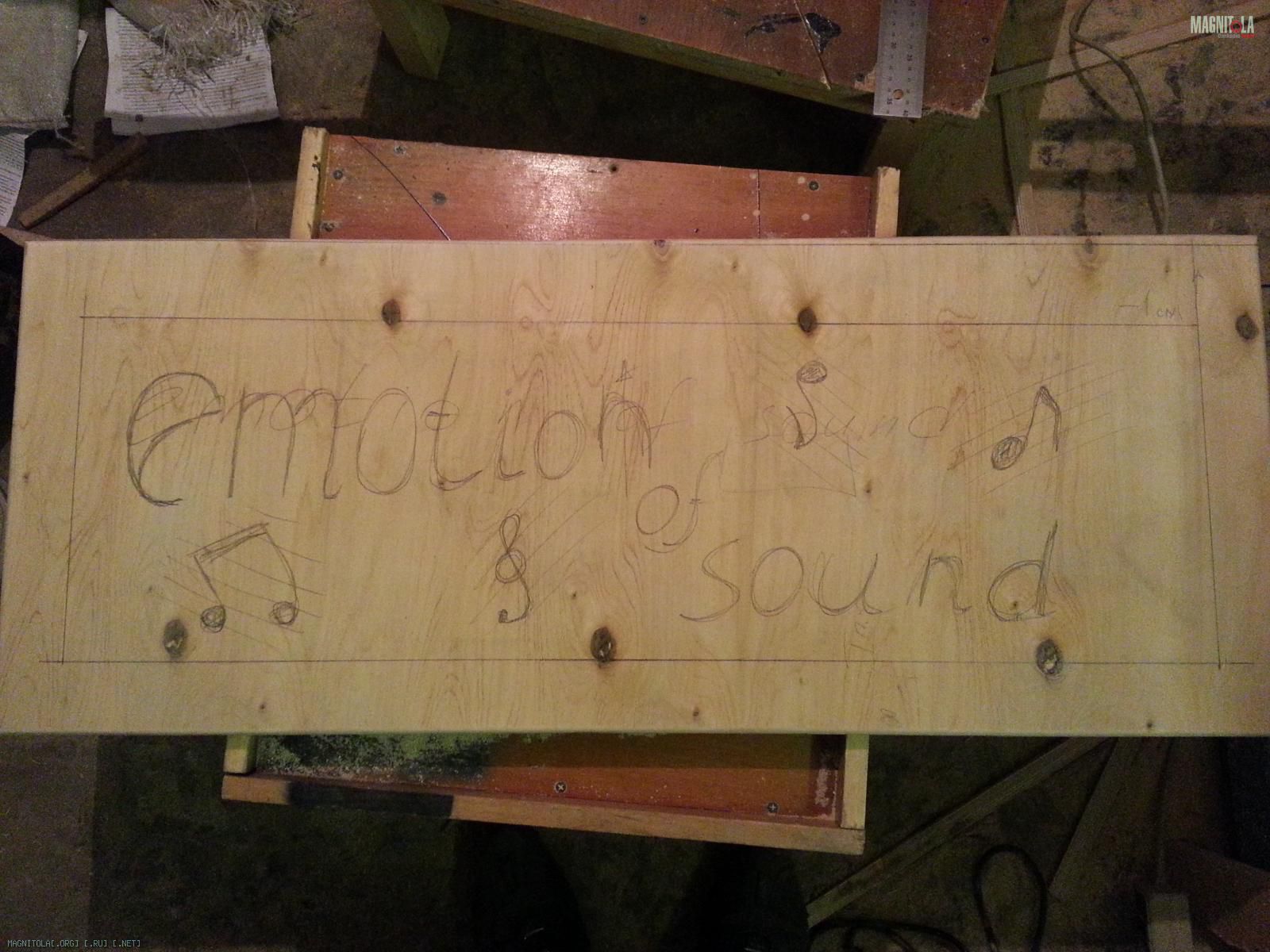 надпись будет уступом вправо-вниз, а в образовавшихся углах будут ноты