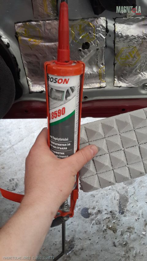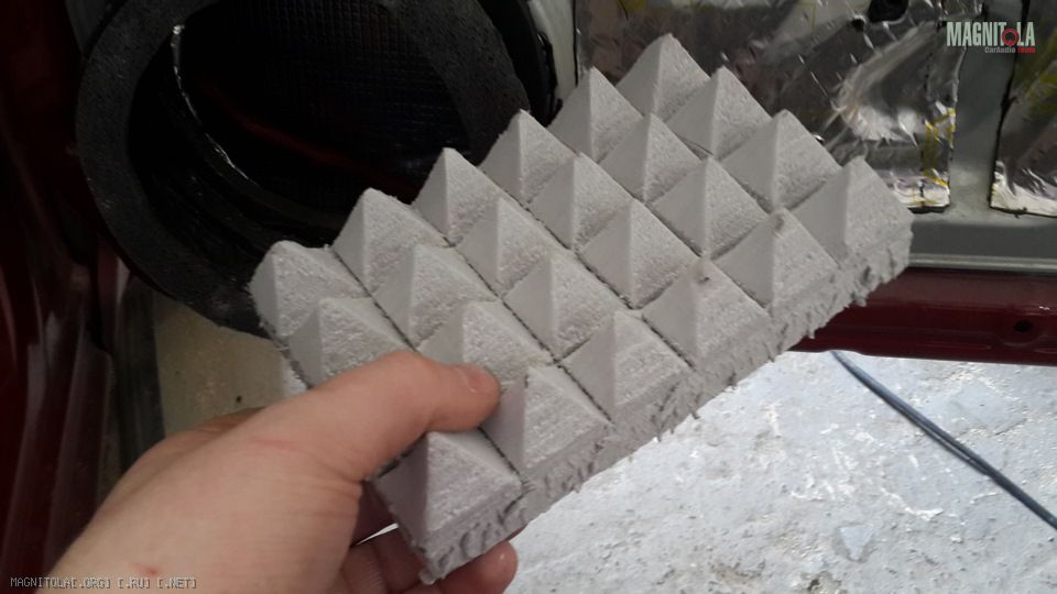 обильно смазываем пирамидки. не забываем предварительно обезжирить дверь!