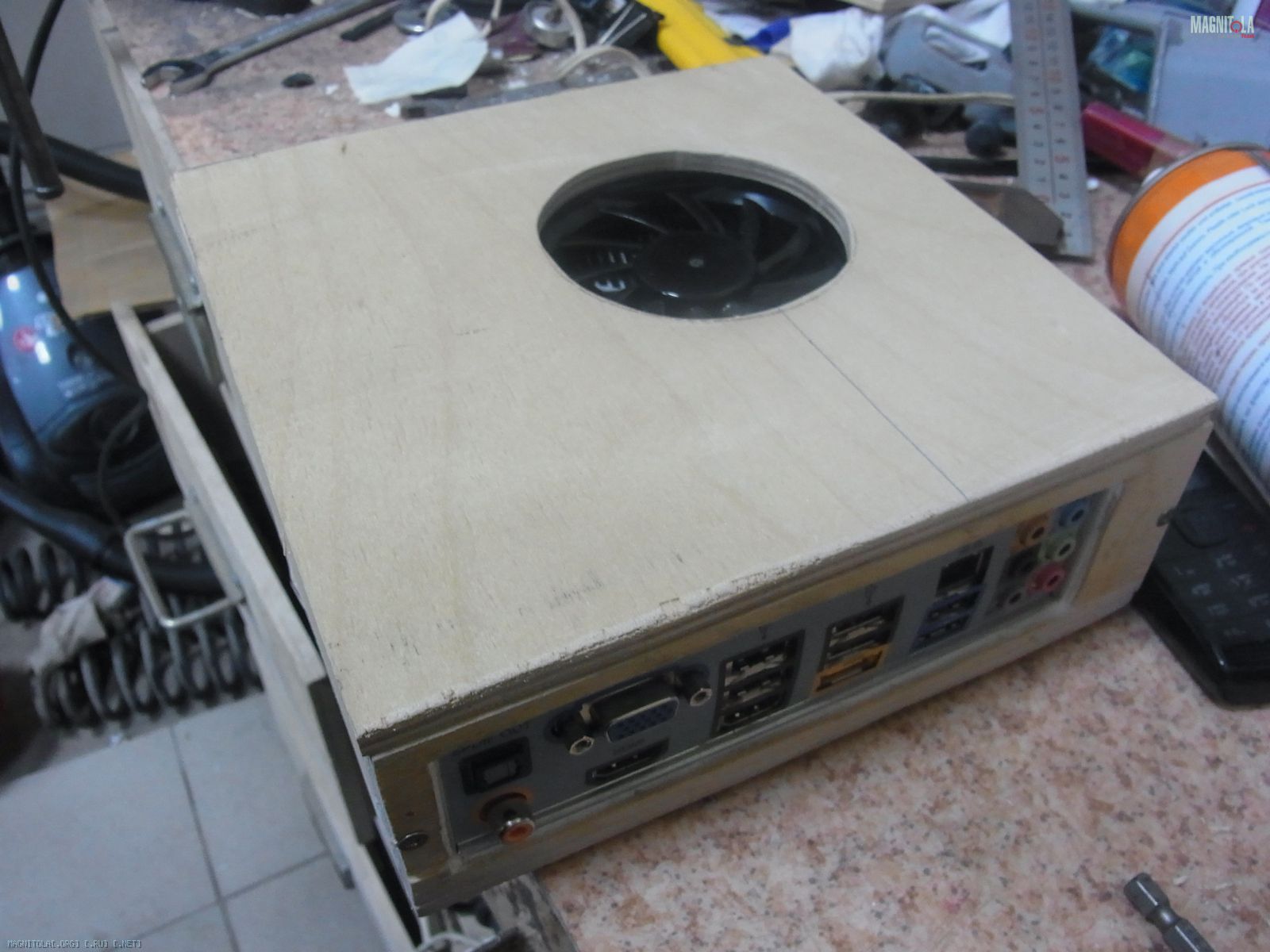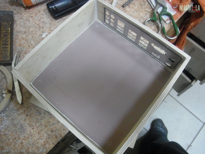 Короче запилил корпус из фанеры и потерпел фиаско. Просто плата встает внутри панели и места еще куча. А в корпусе не лезет. Пока из париантов только оргстекло осталось...