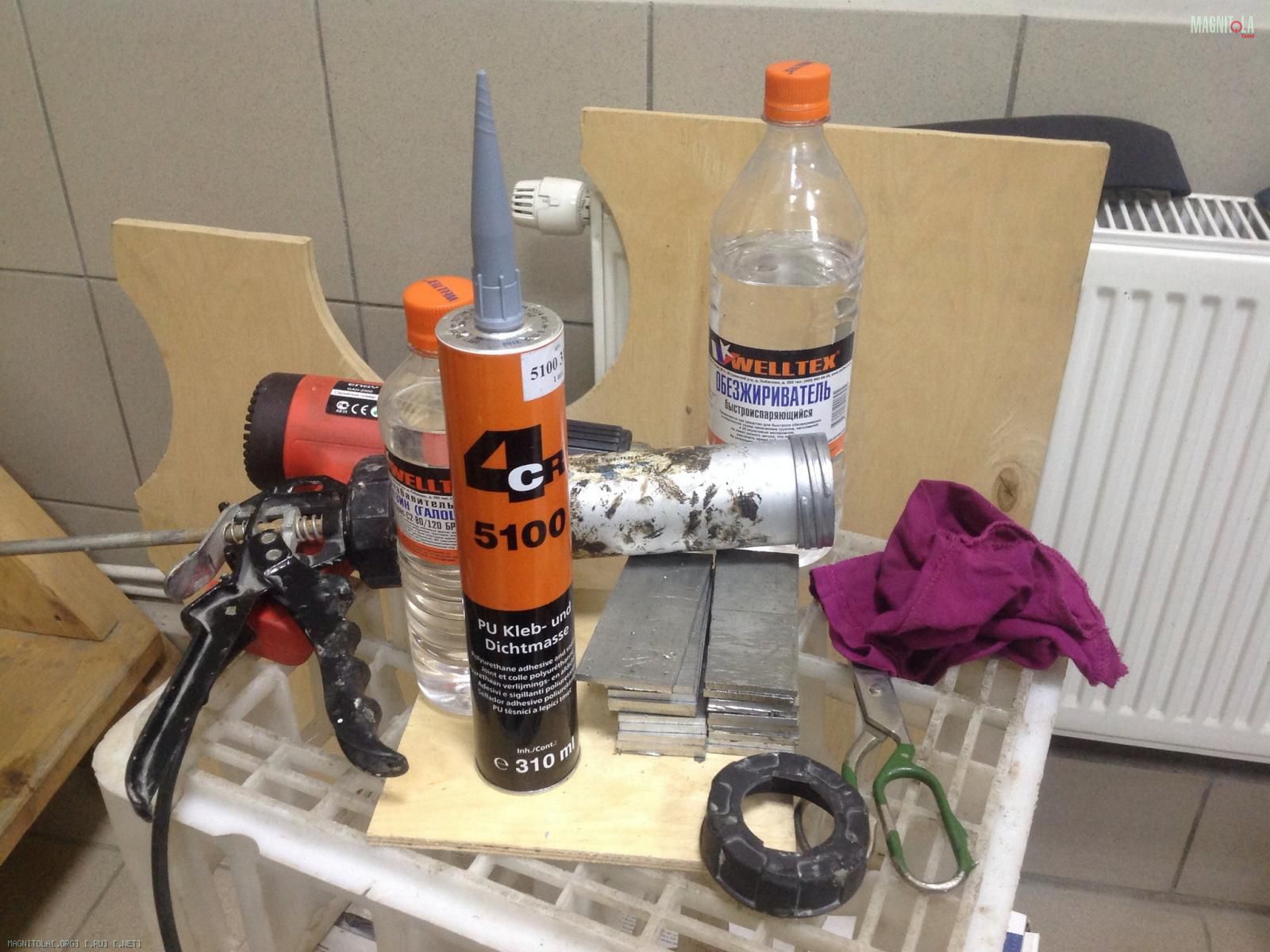 Начал готовить передние двери к ШВИ. Напили алюминиевых пластин толщиной 5мм и вклеил их на плоские поверхности металла. По 10 в передние двери и по 5 в задние.