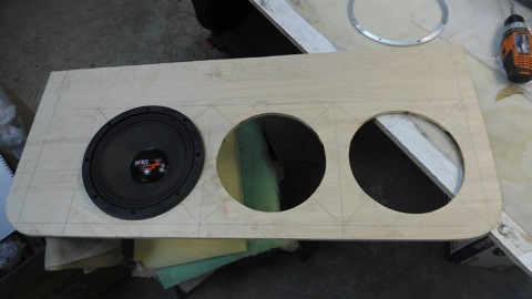 Многие знают. что мы планируем поместить 3х10" и 2х16см. в стоковую обшивку лепить это все было бы величайшей глупостью, поэтому мы берем те самые стандартные обшивки, фанеру 15мм и вырезаем наши заготовки, предварительно отделив верхний "батон" он основной обшивки. Он останется, правда немного модернизируется.