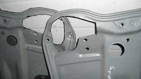 Вложение 571158Пришло время доработки щита с механизмом стеклоподъемника. Чуть отрезаем лишнее.
