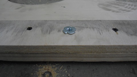 Вложение 571152Забиваем в отверстия мебельные забивные гайки под болт М8 и притягиваем болты с другой стороны. У нас получились что то на подобии Шпилек.