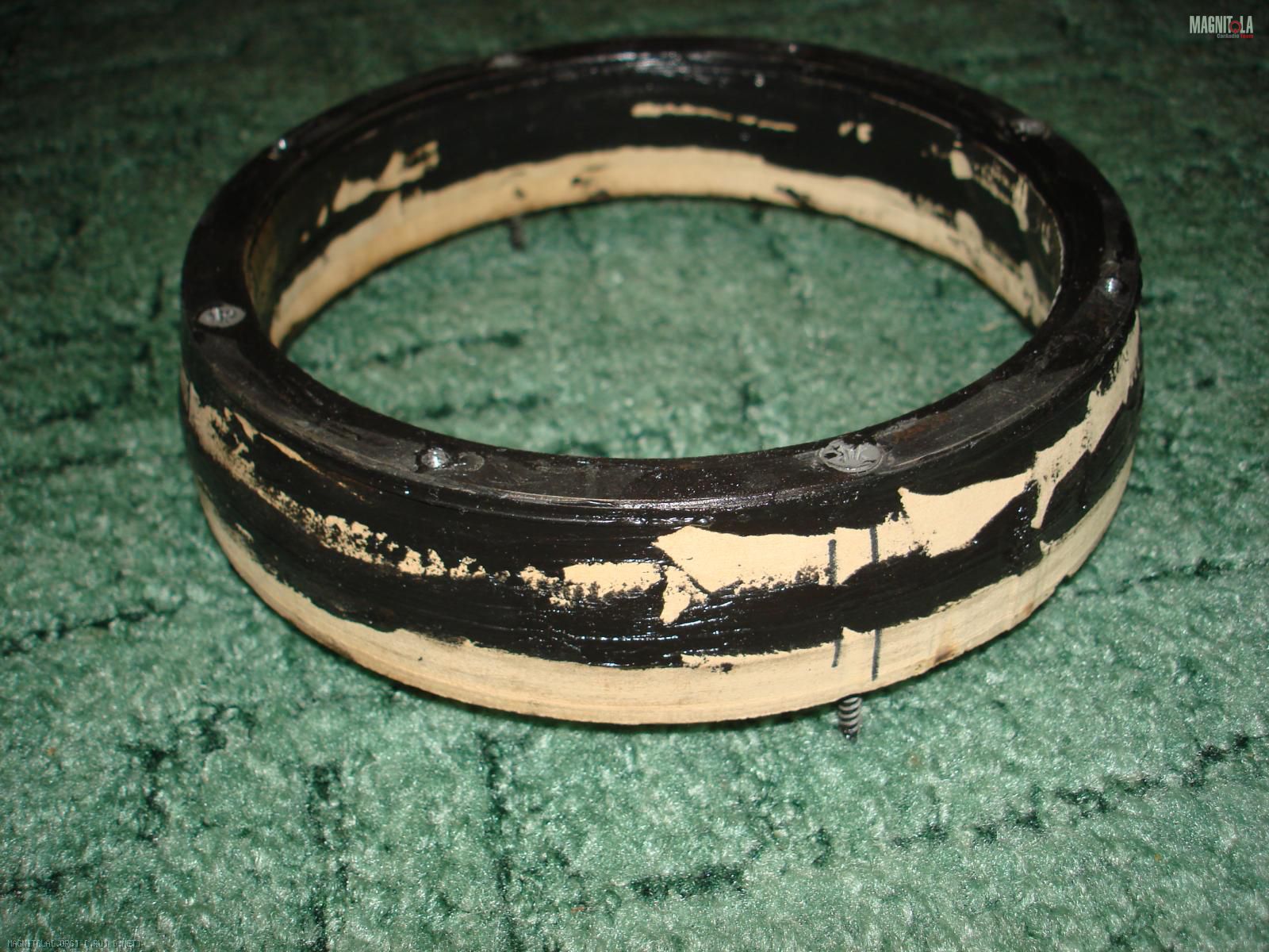 Фуухх..Давненько ничего не писал... Недавно у меня сломалсо усь , который работал на мидбас, я его в ремонт отправил, а сам решил тем временем немного доработать двери и посадочные места под мидбас... Первое что мне не нравилось-глубокий колодец...В правой двери к тому же в спешке, напиленый и собранный так. что оказалось он идет немного на сужение, а не на расширение...в левой-ровно... ну короче , напилили мы с товарищем новых колечек, из мдф...фрезой конусной...правда не сильно расширяется, но это лучше чем ничего..15 градусов там... ну и металлические колечки, с резьбой. для болтового крепления мидбаса...пока это все склял полиуретановым герметом. и скрутил саморезами... Получилось прикольно-мне понравилось))))