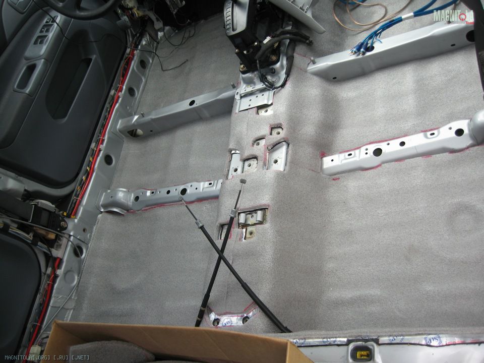 Еще летом салон был зашумлен окромя багажника и задних дверей, в скором времени и эту недоработку устраню. Пол, моторная перогородка и арки- Бимаст Бомб, далее шумка- Барьер 8, дополнительно штатная шумка моторной перегородки была проклеена битопластом (просто битопласт некуда было девать:laugh3:).