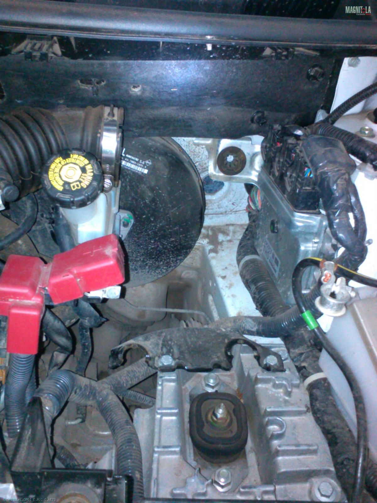 Для протаскивания провода демонтировал корпус воздушного фильтра. Снимается он не сложно и без него намного проще все делать.
