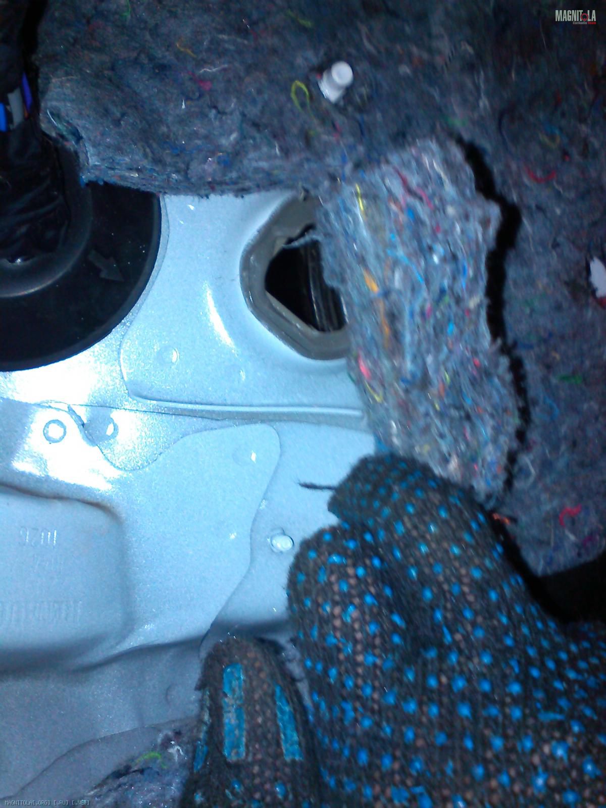 Так же снят основной бардачок и верхняя полка панели (под лобовым которая). Перед демонтажем всего этого «хозяйства» обязательно снимите резинки всех дверей иначе отломаете фиксаторы, как сделал это я. Вообще за период монтажа/демонтожа мною было сломано штук 5 различных защелок. Некоторые из них закрепил на эпоксин (пластилин твердеющий), а на другие просто забил. После сборки салона остался 1 лишний винт. И так по существу… Усилитель прикрепил к водительскому сиденью на 4 стяжки пропущенные в отверстия усилителя для саморезов. У сиденья есть 2 трубки, одна из которых закрыта тканью. За эти трубки и зацепил, порезав ткань ножом. Держится прекрасно.