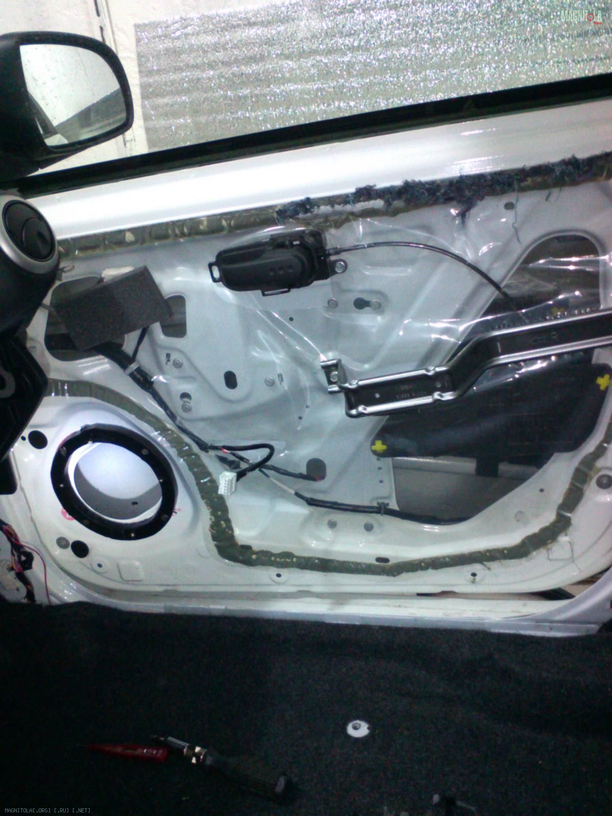 Так вот, установка мидбасов не доделана. Во-первых не доведена до оптимума жесткость дверей, во-вторых не доведено до минимума влияние обшивок на звук. Я ведь правильно понял, что динамики играют под штатными пластиковыми сеточками за обшивкой? В-третьих не доведено до максимума отверстие в двери. Я понимаю, что машину резать жалко, но лишние "козырки" из металла за мидбасом - реально лишние. Во-первых, площадь отверстия сильно сужается, а во-вторых в Вашей реализации (посмотрите внимательно на выложенные Вами же фоточки) возле динамика будет скапливаться вода. Я был как-то в Уфе (ещё ребенком, мне Мулдашев глаза оперировал) - не помню, чтобы там был засушливый Калифорнийский климат)))