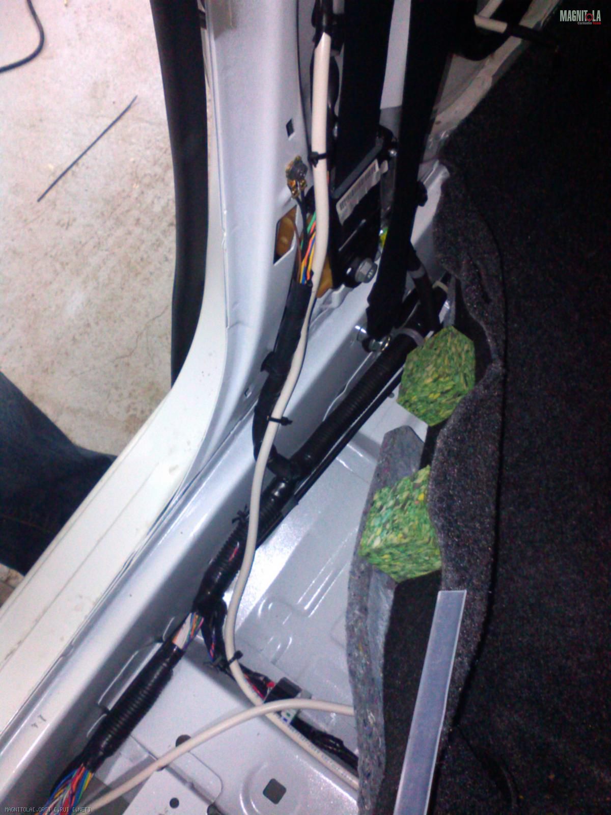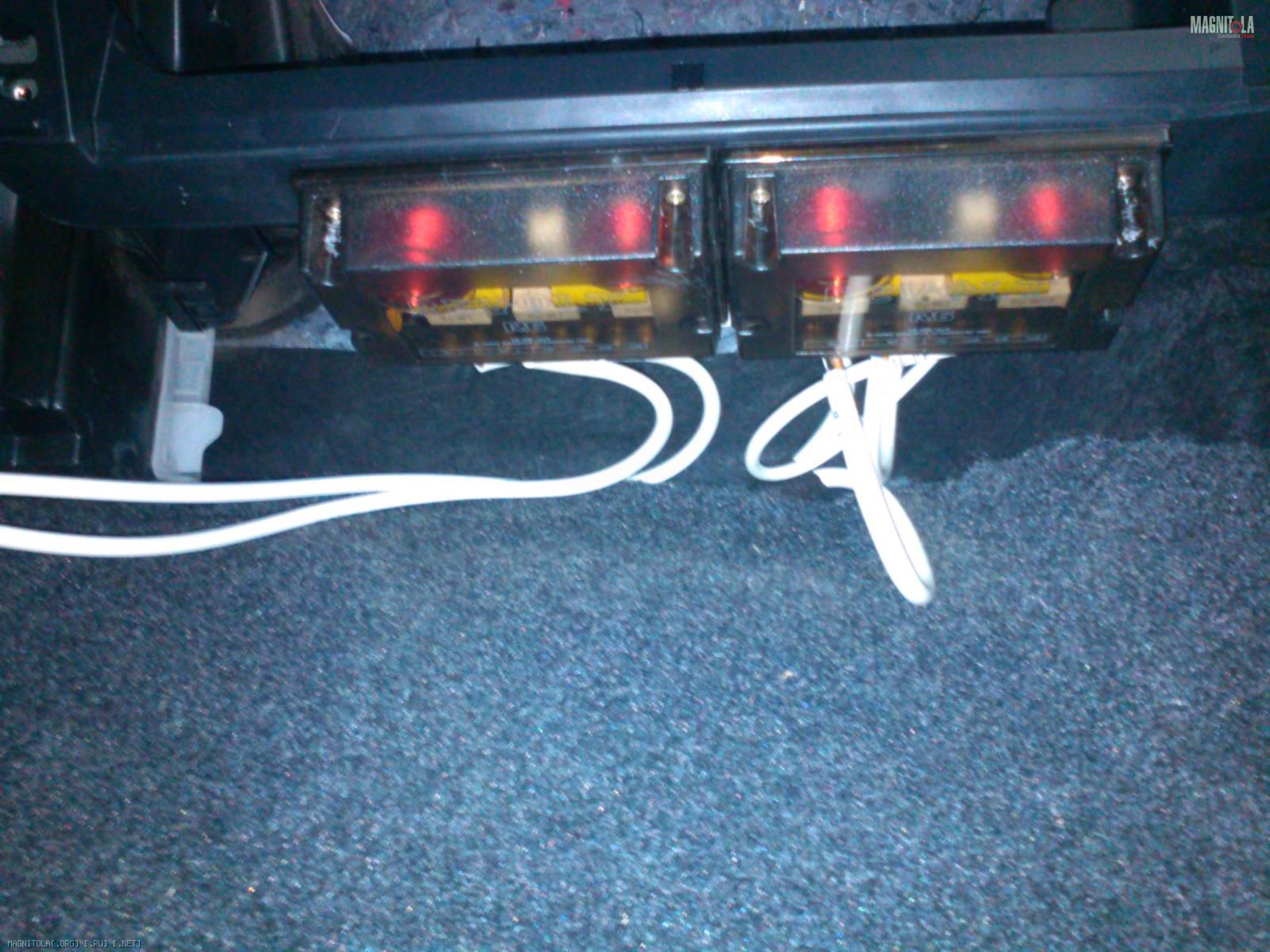 Дальше межблоки. Их я прсто пустил по центральной консоли до самой ГУ с минимальным количеством поворотов и загибов. Все провода выводил из под обшивки в месте где выходят воздуховоды для ног задних пассажиров. Сила слева, остальные справа.