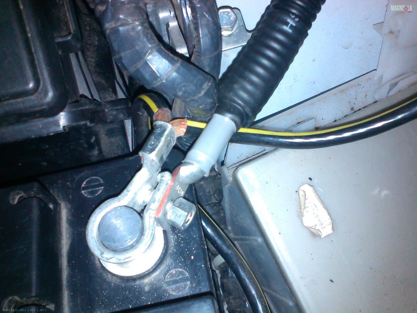 Так же пришлось подрезать крышку плюсовой клеммы аккумулятора, т.к. она не закрывалась с дополнительным кабелем.