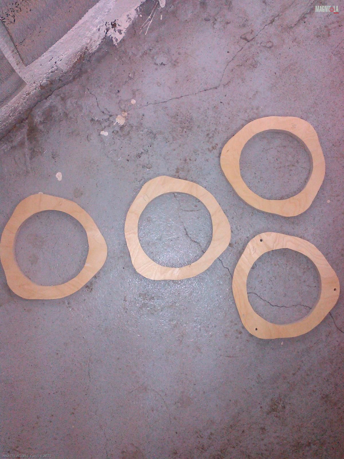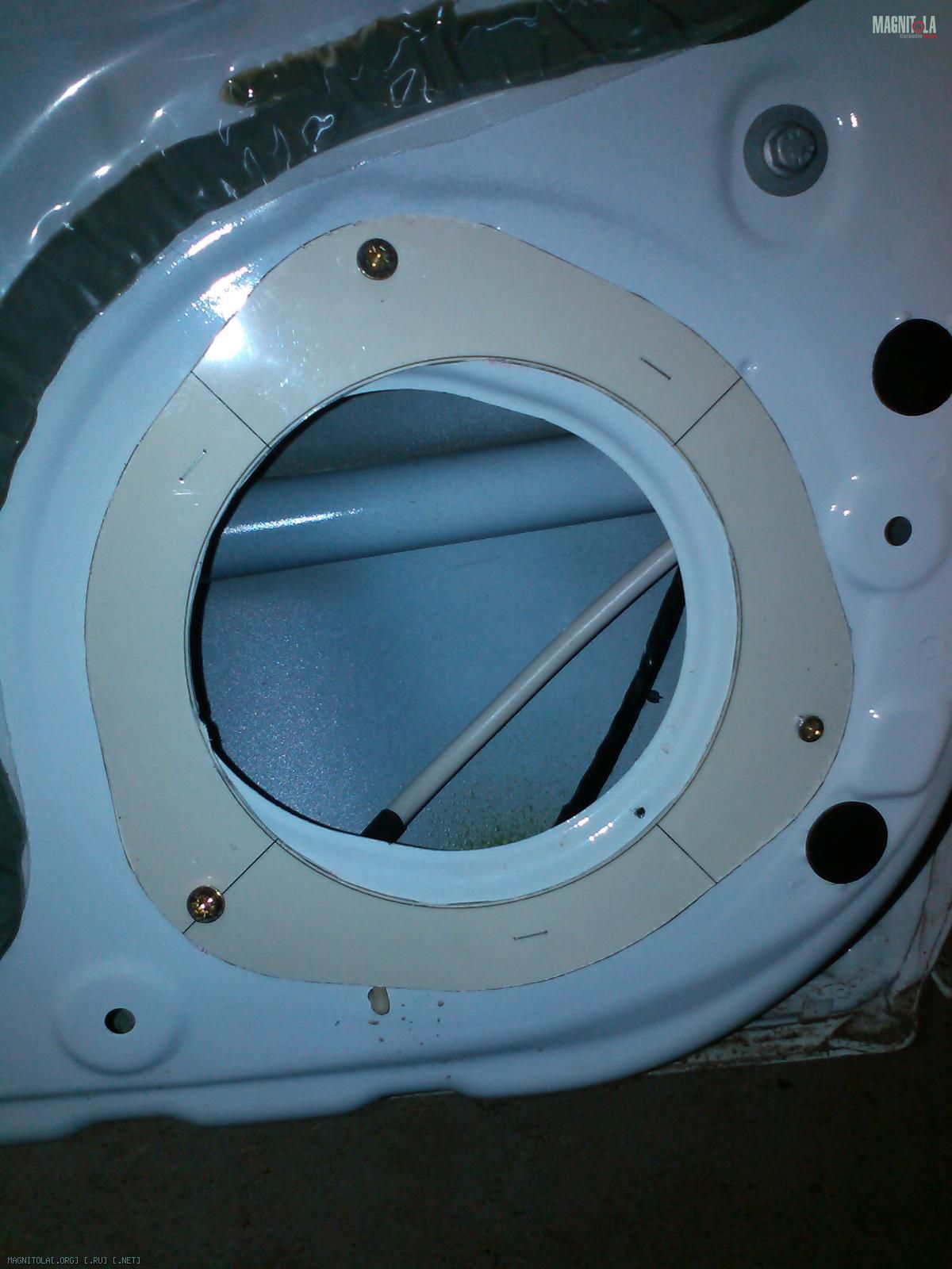 Я ставил проставки из двух слоев ДСП 16 мм. Только советую ближнее к двери сделать с крепежными ушками, а второе (которое ближе к динамику) просто круглое, так как там именно крепежные ушки упираются в обшивку. Сейчас их переделал, из трех колец фанеры 10 мм. Вложение 519510