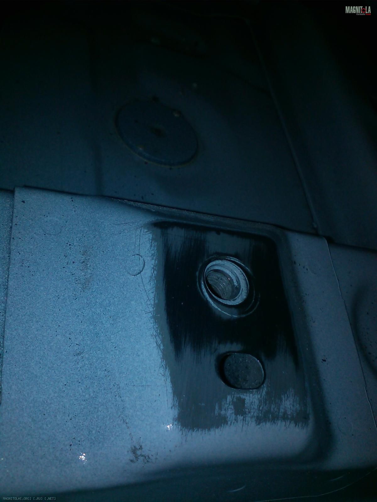 Со стороны усилителя так же сделал минусовой провод. Обжал его с одной стороны наконечником и зажал его в болт крепления сиденья. Болт пришлось заменить, т.к. штатный запрессован в шайбу, а наконечник надо одеть сверху шайбы. Купил болт и шайбу (кажется М10), зачистил рельсу сидушки с обеих сторон и кузов в месте крепления до металла и стянул всё вусмерть.