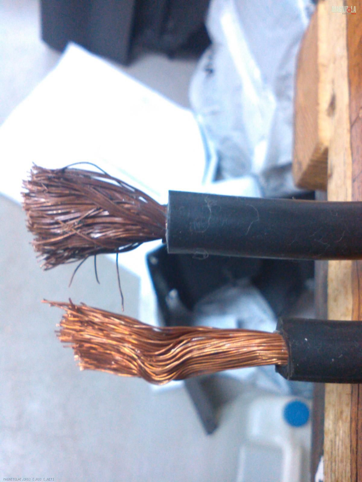 Тут кстати был подвох. Купил провод не там где до этого. Тот же самый КГ25, но только отвратного качества. Медь темная, изоляция не снимается и вплавилась в жилки провода, пришлось отказаться от него и поехать в тот же магазин где брал первые 4 метра. Фото хорошего и плохого КГ прикладываю ниже.