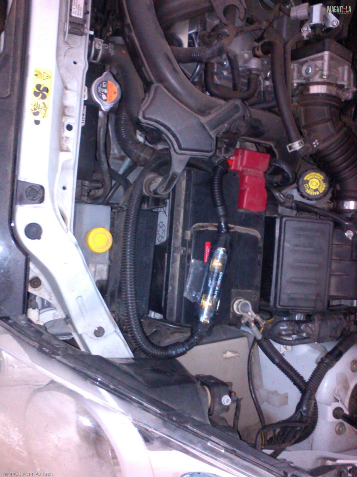 Сила к аккуму пошла вдоль порога. Под моторный отсек вывел её через заглушку для педали сцепления (у меня АКПП) путем вмонтирования в неё кабельного ввода.