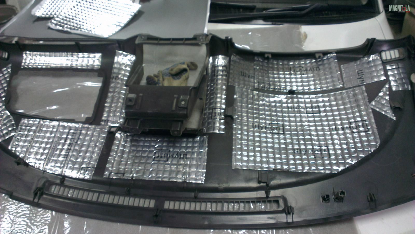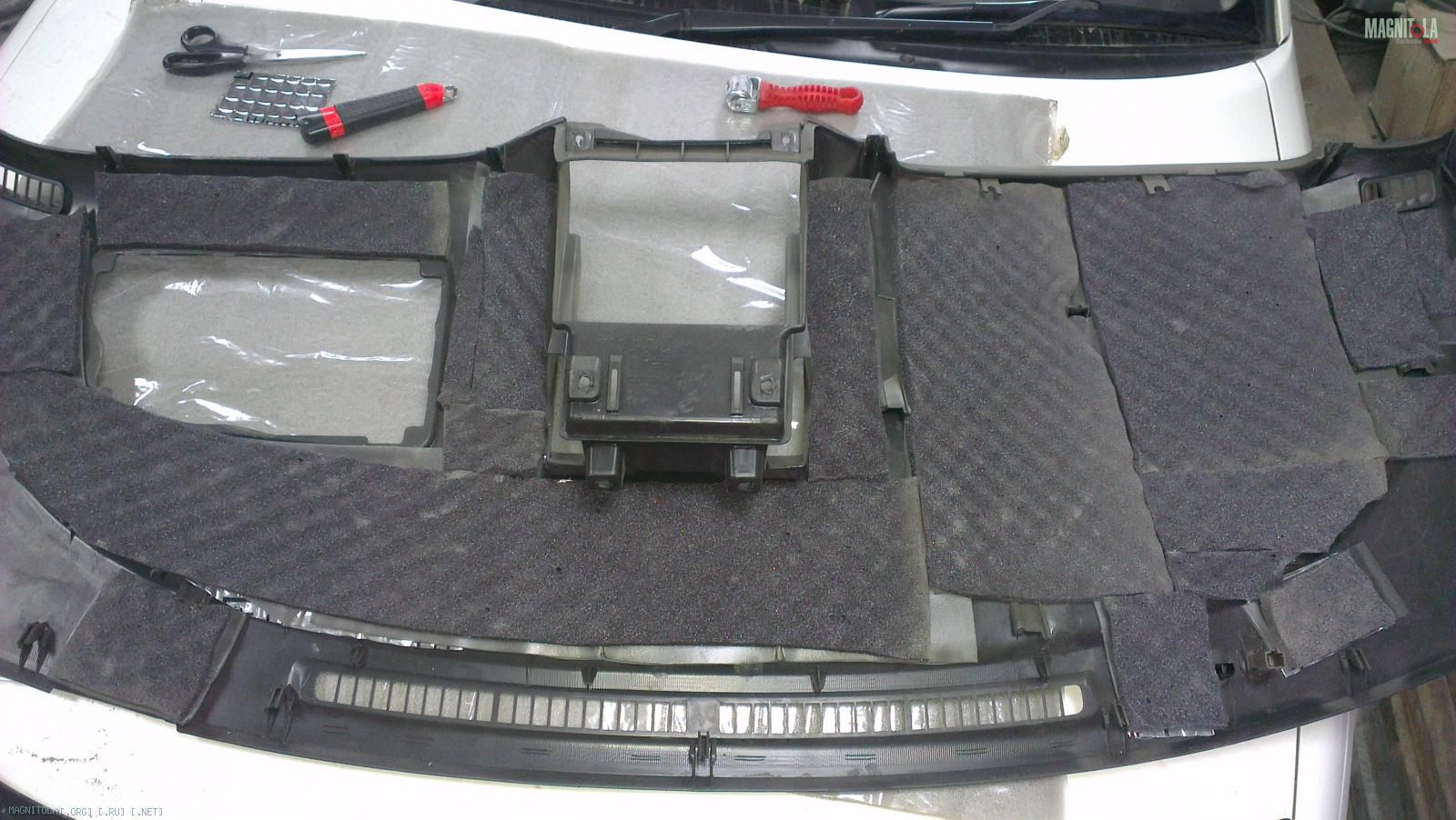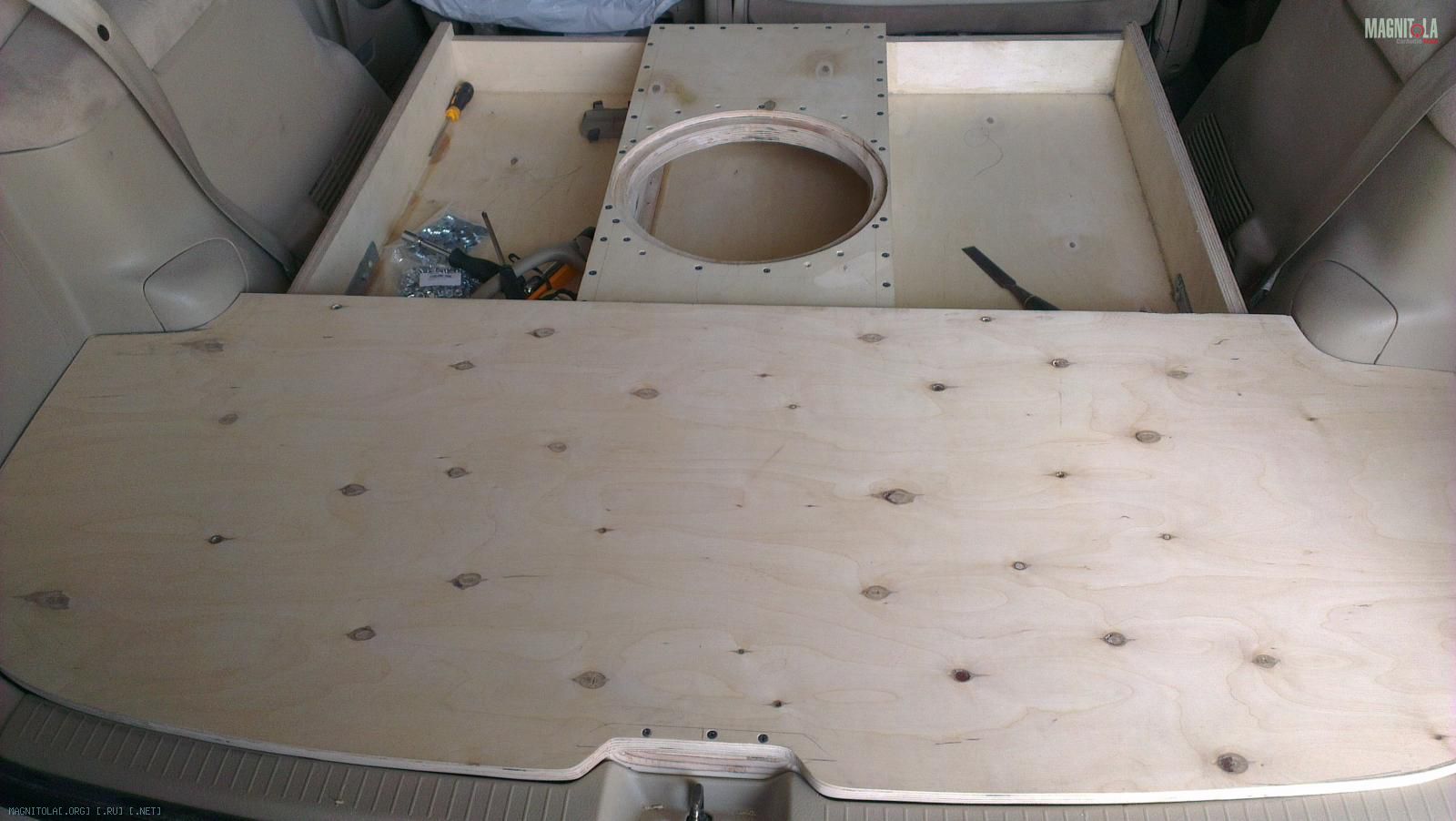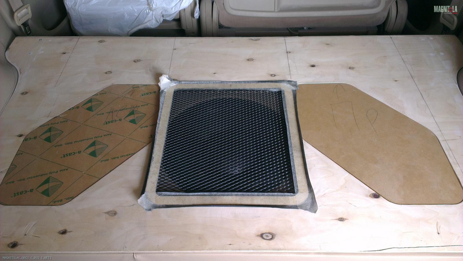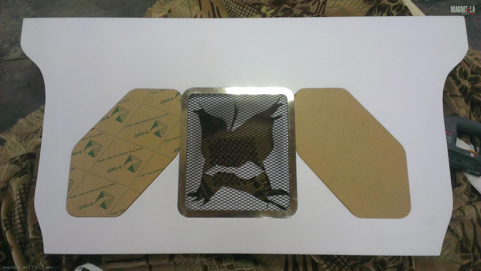Следующая задача, это декоративная панель над сабвуфером и усилителями.