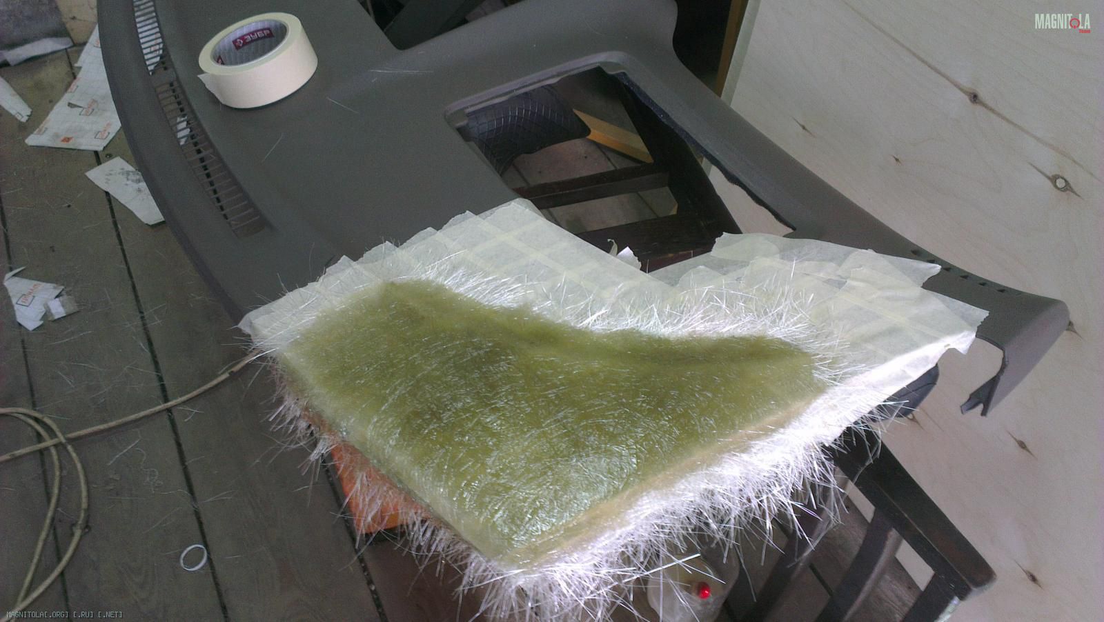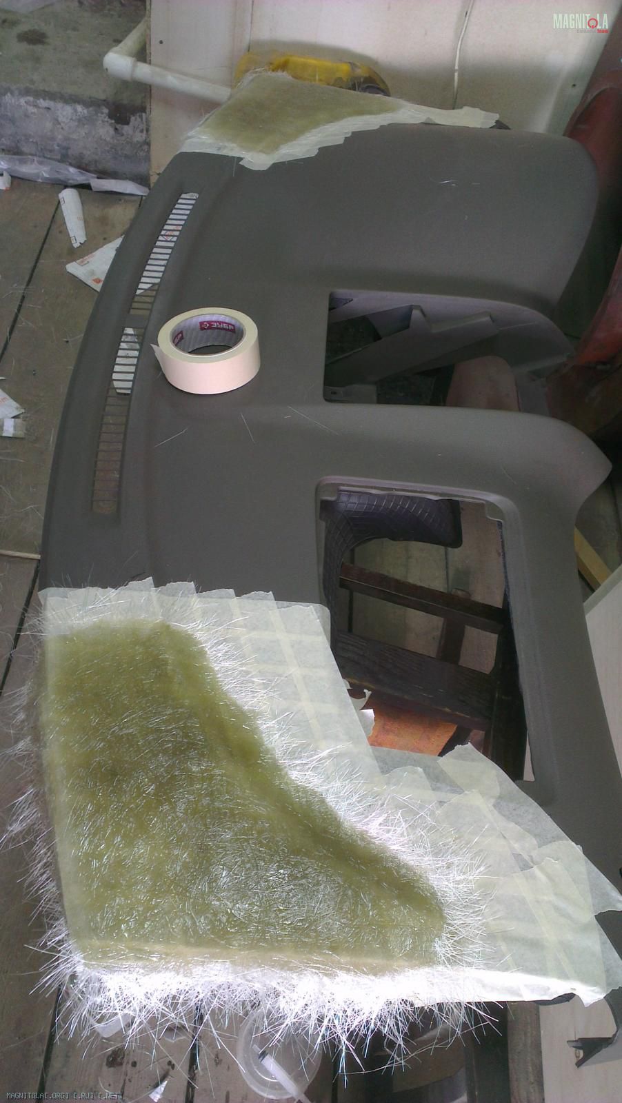 Далее идет в ход все тот же стекломат и шпатлевка.