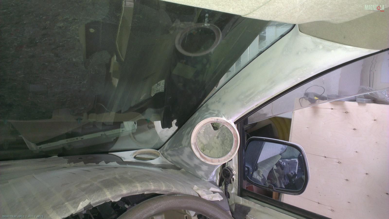 Работу с ВЧ ведем по тому же принципу. Найдя нужное нам направление для динамика, фиксируем его на стойке.