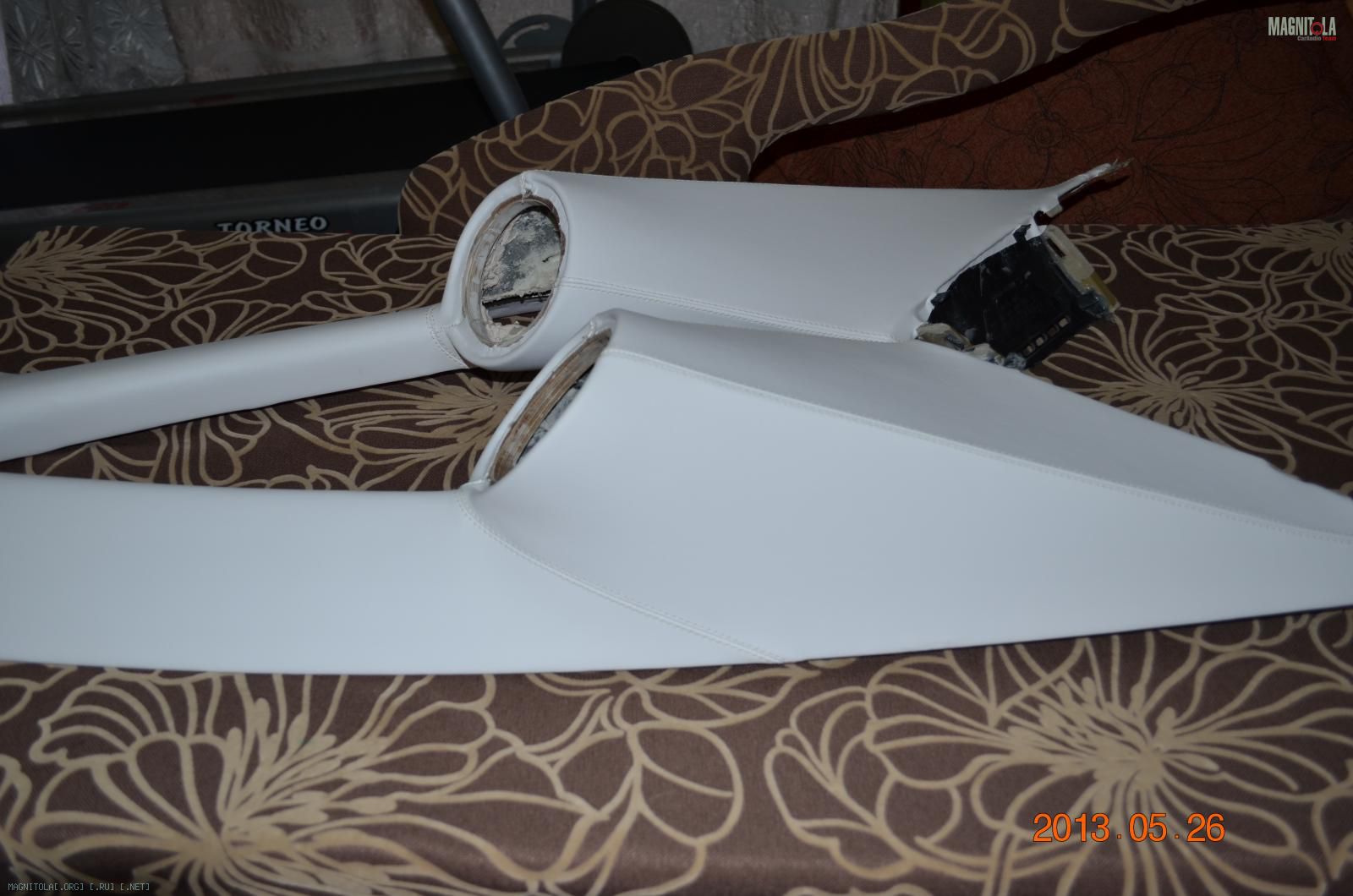 Для сохранения эстетики салона, все детали перетягивались белым винилом, а в дальнейшем красились в цвет пластика.