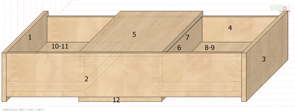 По заданным размерам, распускаем фанеру и собираем короб.