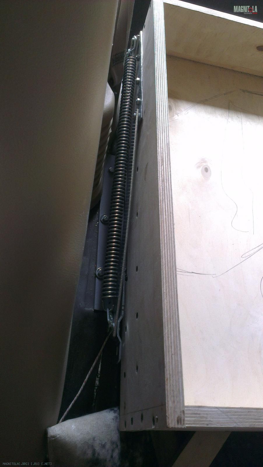 Для удобного доступа к усилителям и дистрибьютеру питания, фальшпанель тоже имеет подъемный механизм с фиксацией на газовых упорах.
