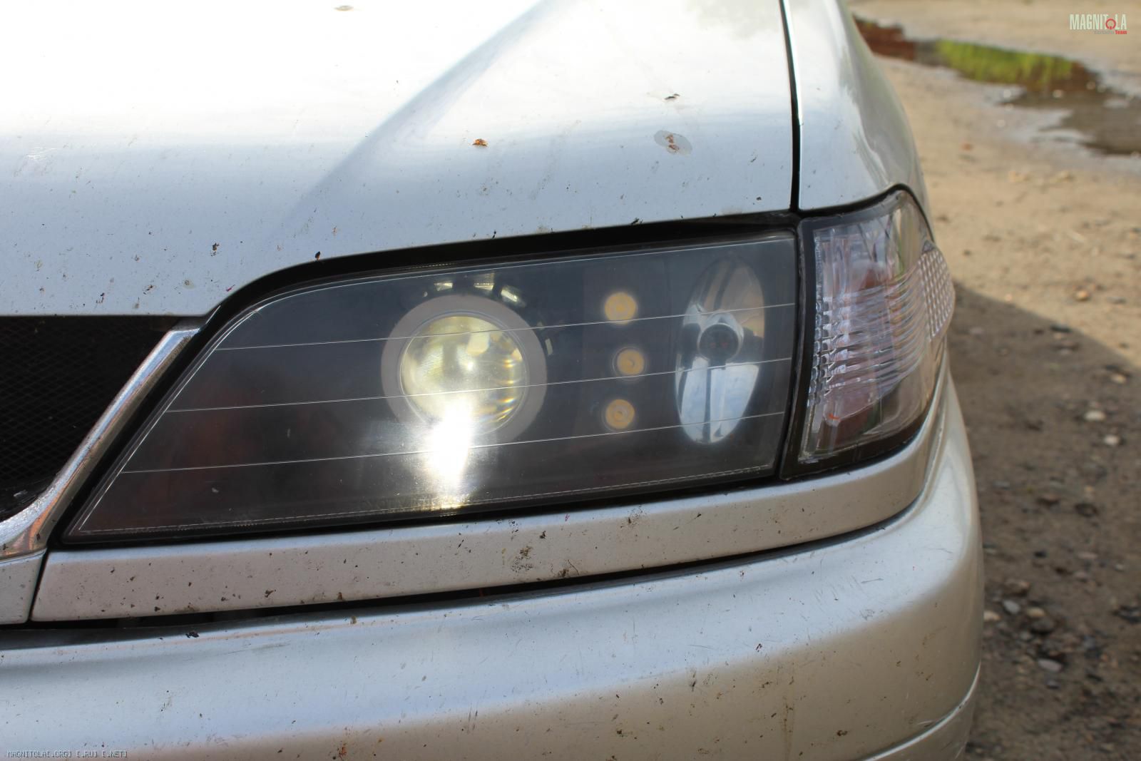 Фары сделал, решил похвастаться. Линзы и ксенон (Китай) уже ставил прошлой зимой. Сейчас покрасил и сделал ДХО. Загораются когда переводишь селектор в "D". Хочу еще спаять плавный розжиг и затухание.