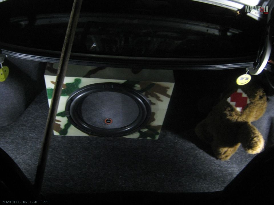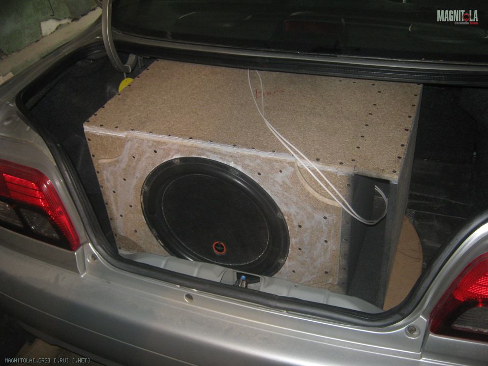 Далее я благополучно поменял автомобиль на Тойоту Карину, на которой езжу по сей день. В Карину я переставил сабвуфер, но переделал короб. Был сколочен ЗЯ на неимоверное количество литров и симпатично оформлен.