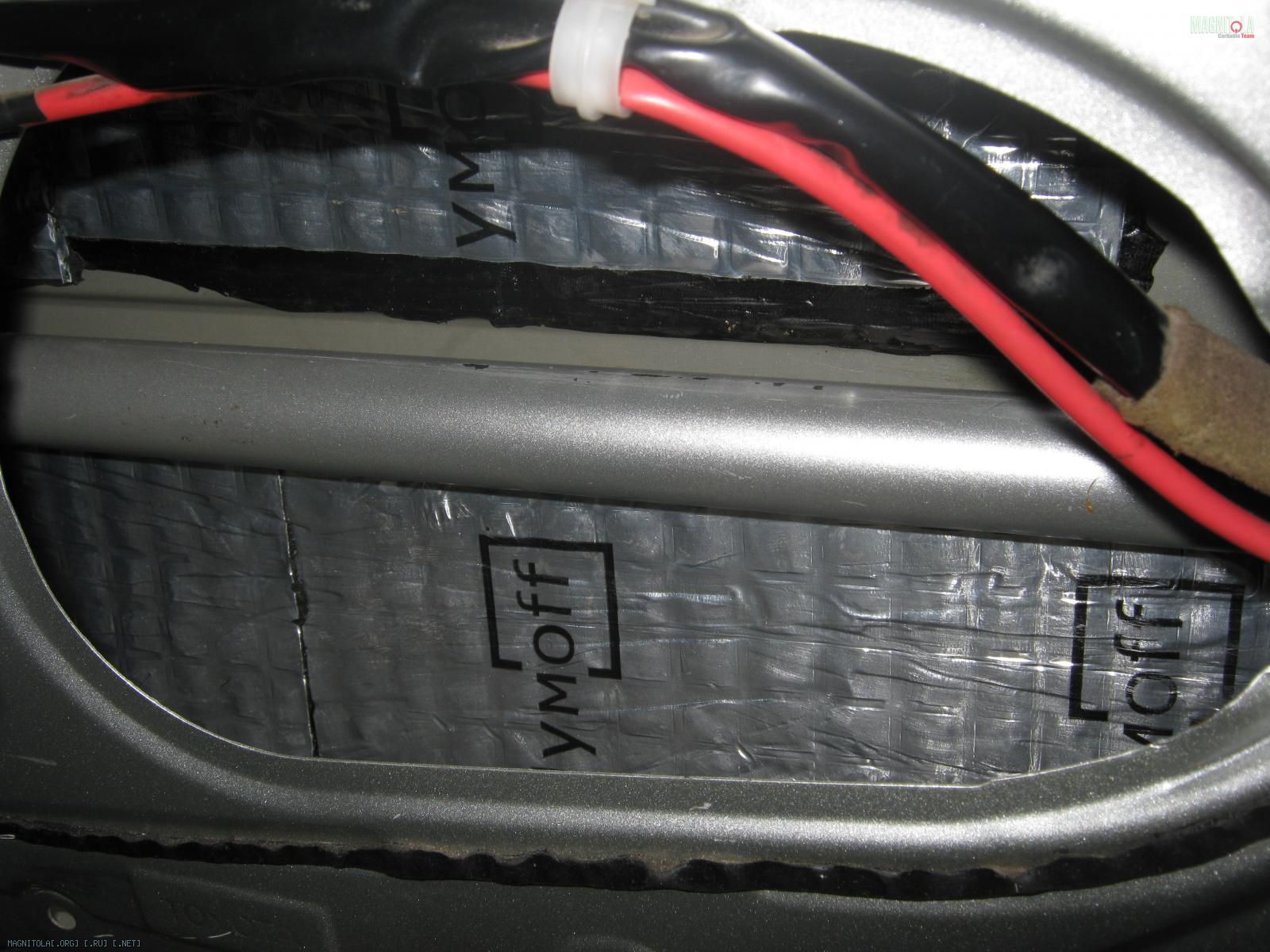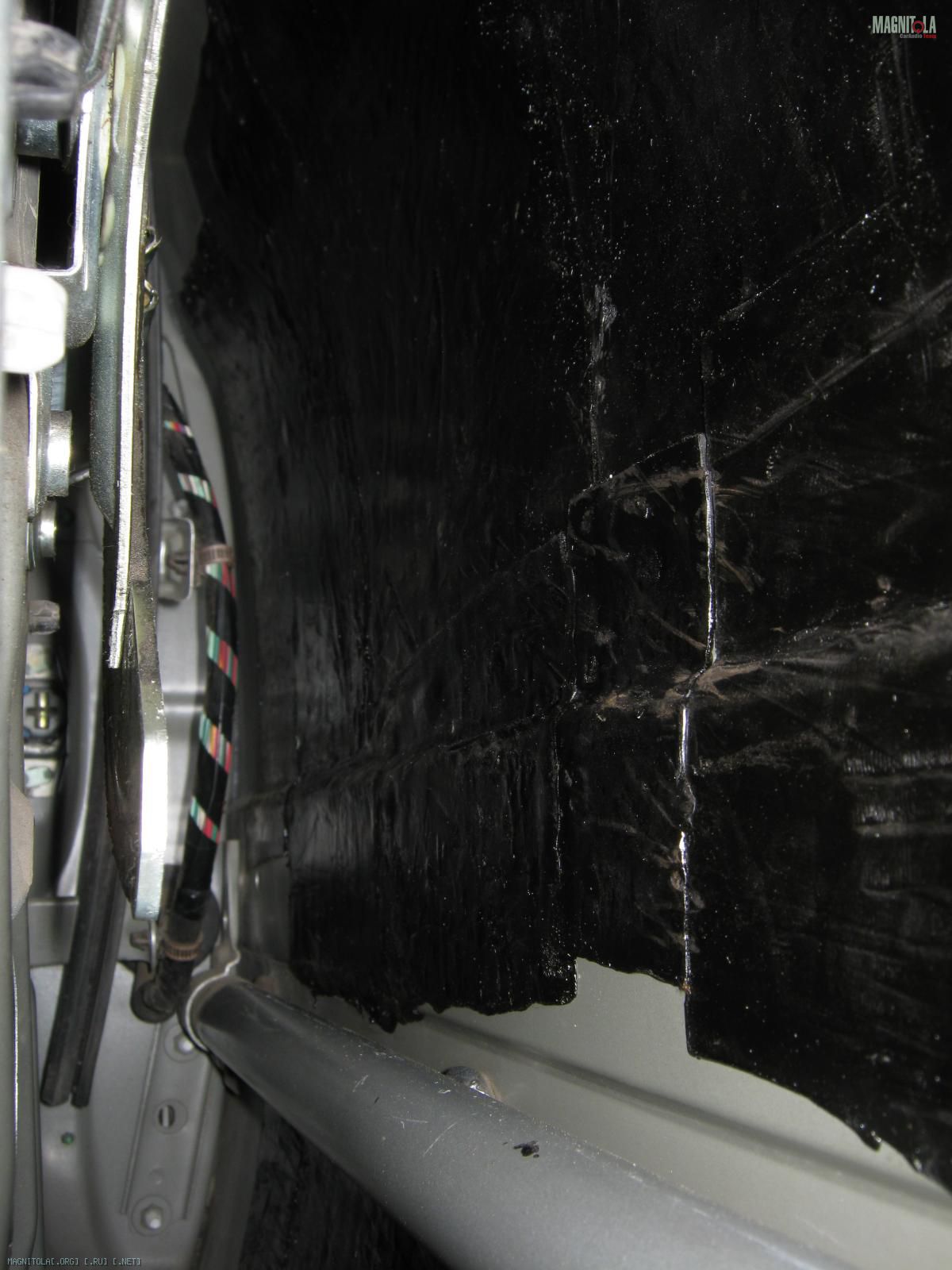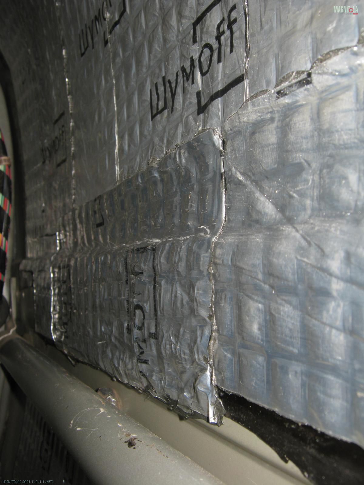 2) Внутренняя стенка. Заделка технологических отверстий алюминием (на заклепки). Сверху все ШумОфф М2.