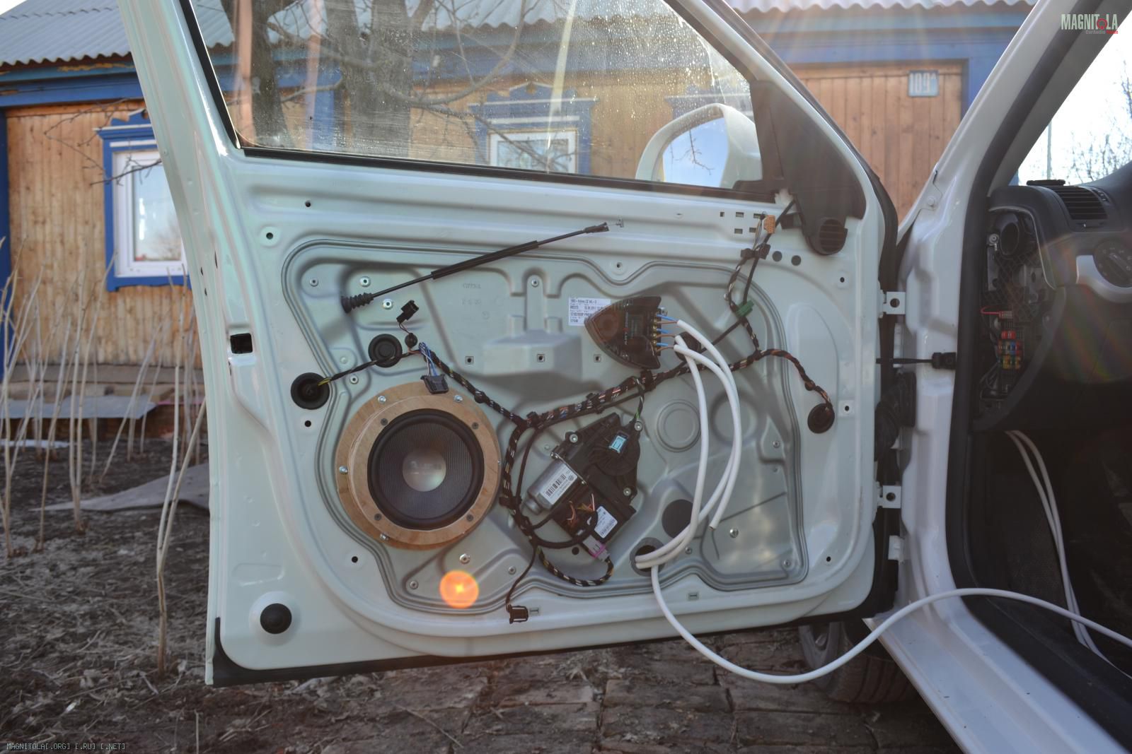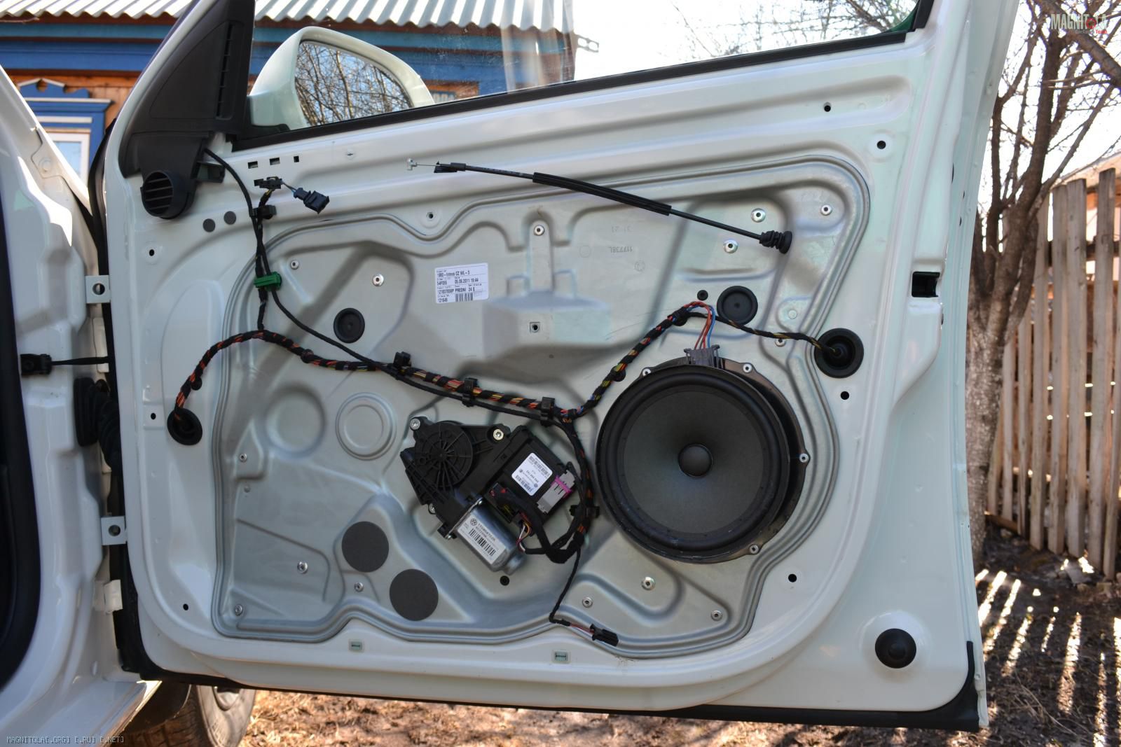 Штатная акустика осталась в задних дверях и сейчас поет одна от головы. Там стоят 16 см миды. А спереди штат стояли 18 см. Так задние динамики вроде даже сносно поют без передних. Только звук весь где то таааам.