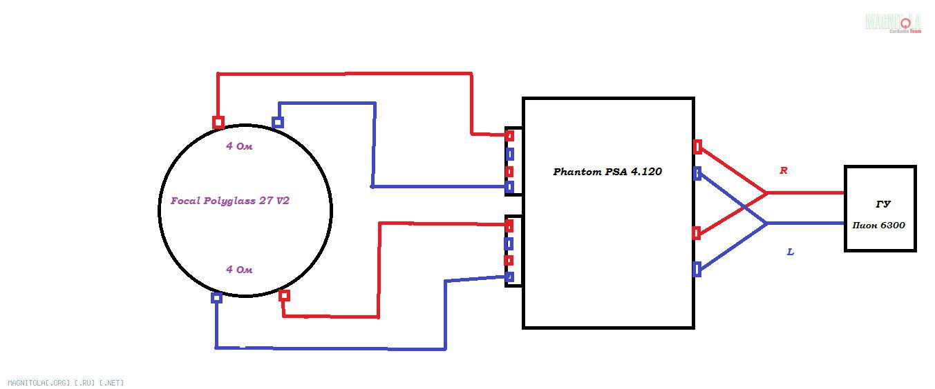 Решил ради эксперимента подключить свой 2-х катушечный саб к четырехканальнику: